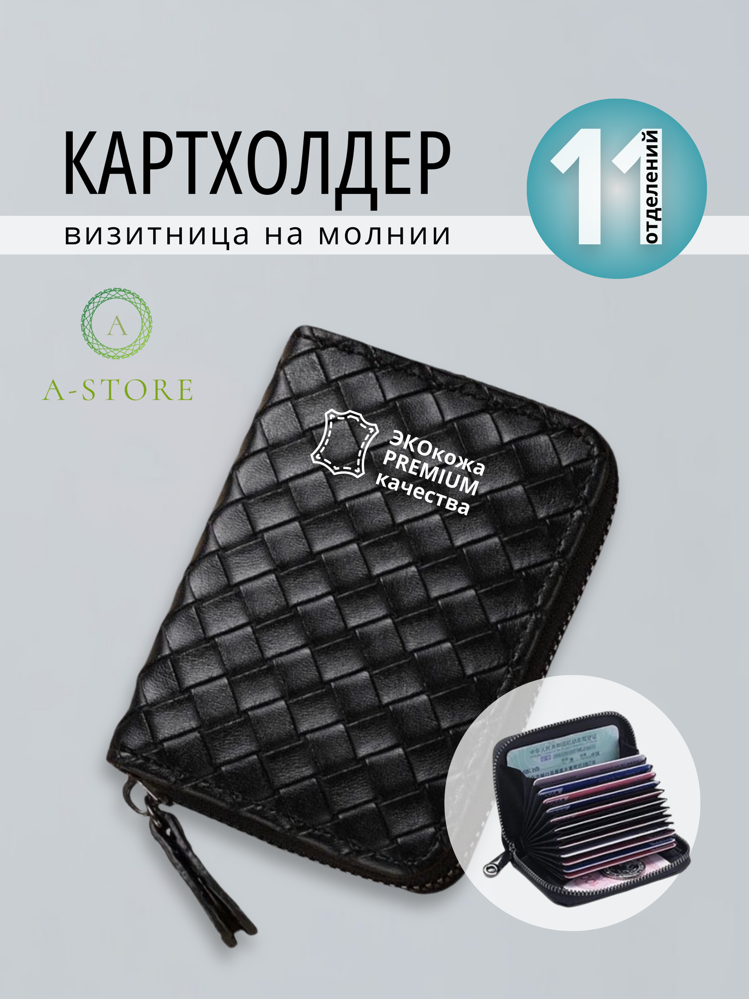 картхолдер; визитница; чехол для карты; картхолдер мужской; черный A-Store ; подарок; кошелек плетенка