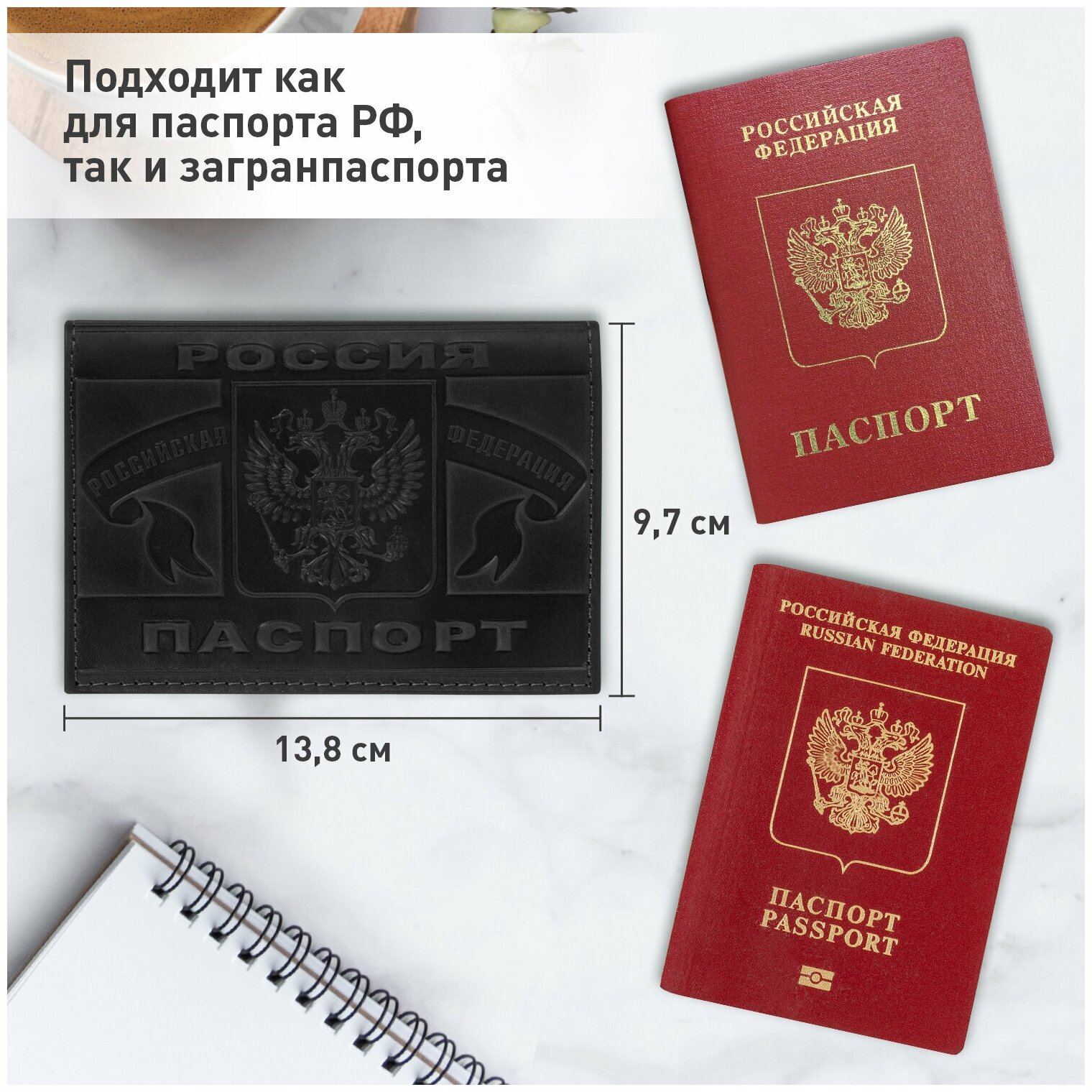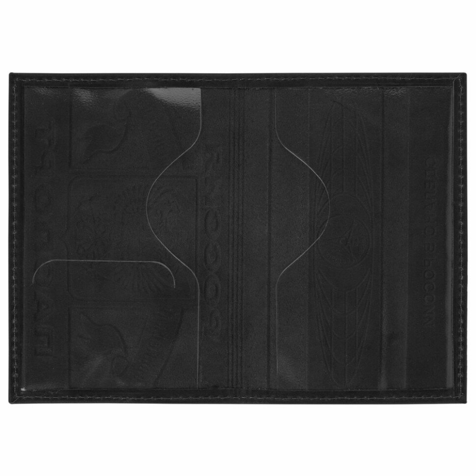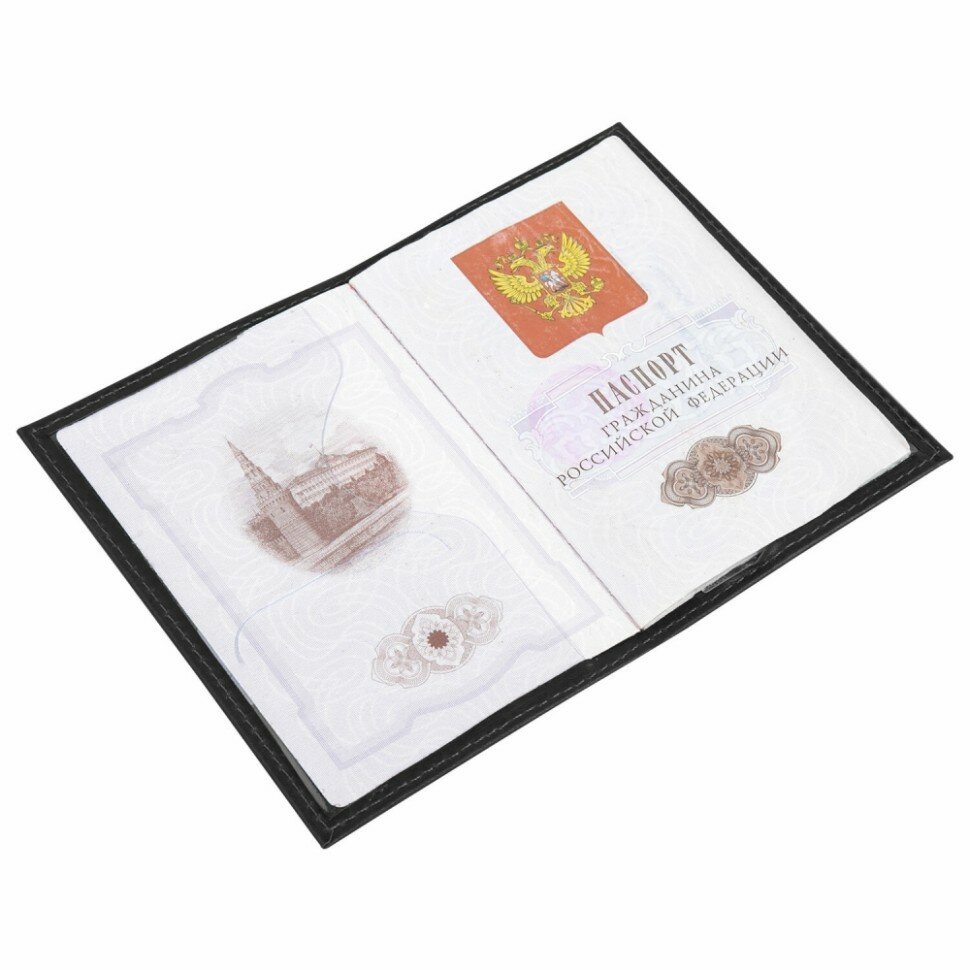 Обложка (чехол) на паспорт / для документов натуральная кожа герб РФ + Паспорт Россия, черная, Brauberg