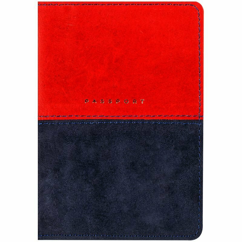 Обложка для паспорта OfficeSpace "Duo", кожа, красный, синий, тиснение фольгой (311099)