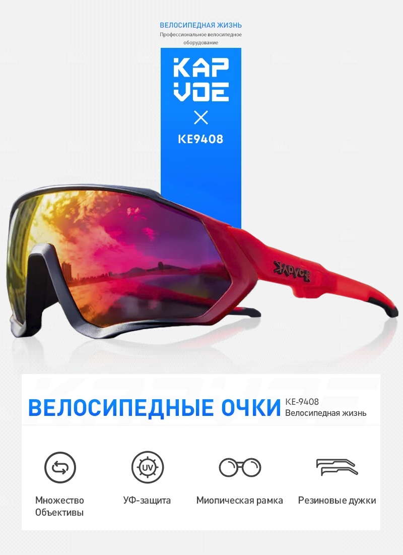 Очки спортивные солнцезащитные для мужчин и женщин Kapvoe для велосипеда, туризма, бега, лыжероллеров, лыж, цвет черный красный, UV400