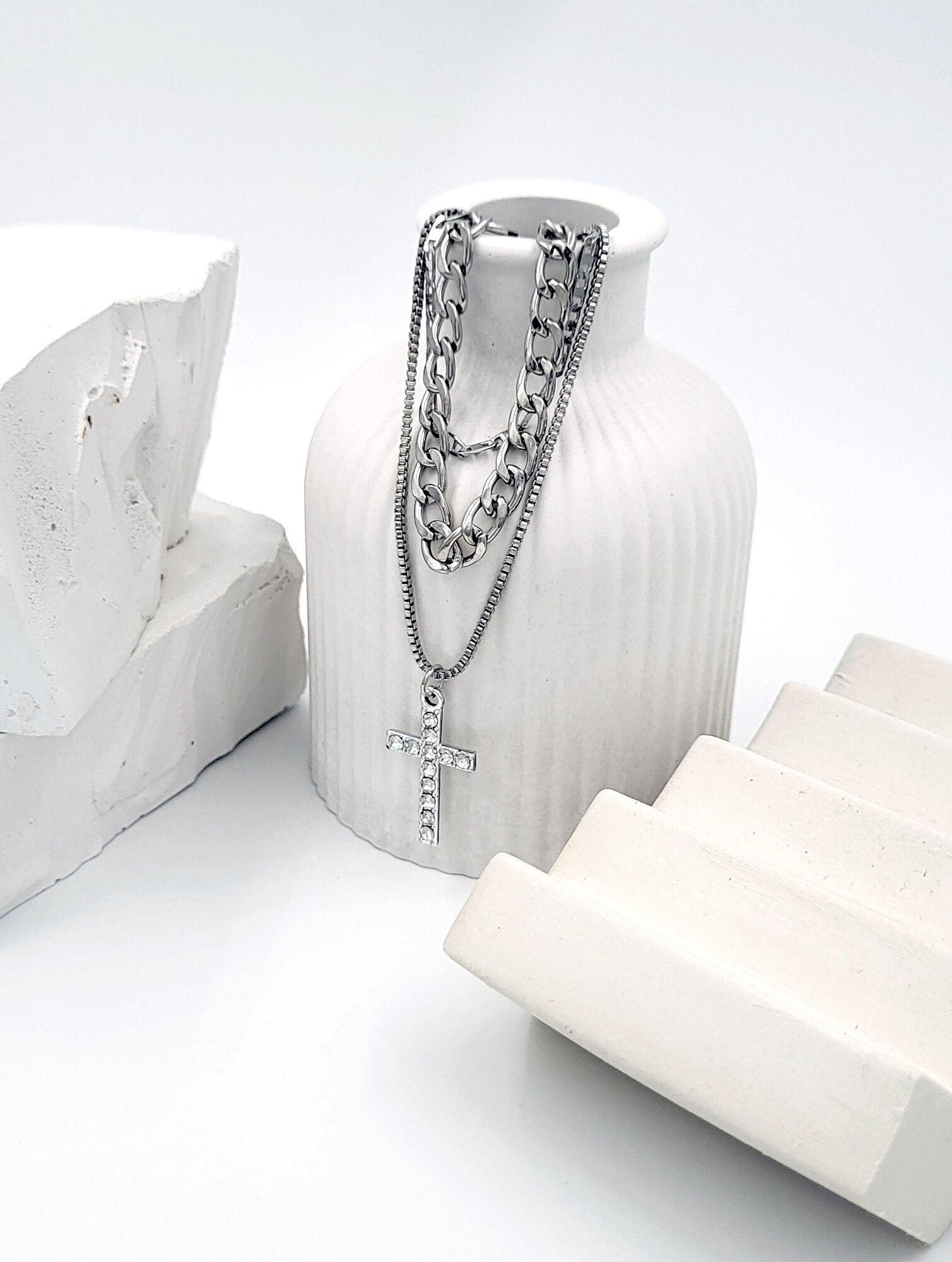 | Комплектация | 3 цепочки разного плетения и кулон-крестик |