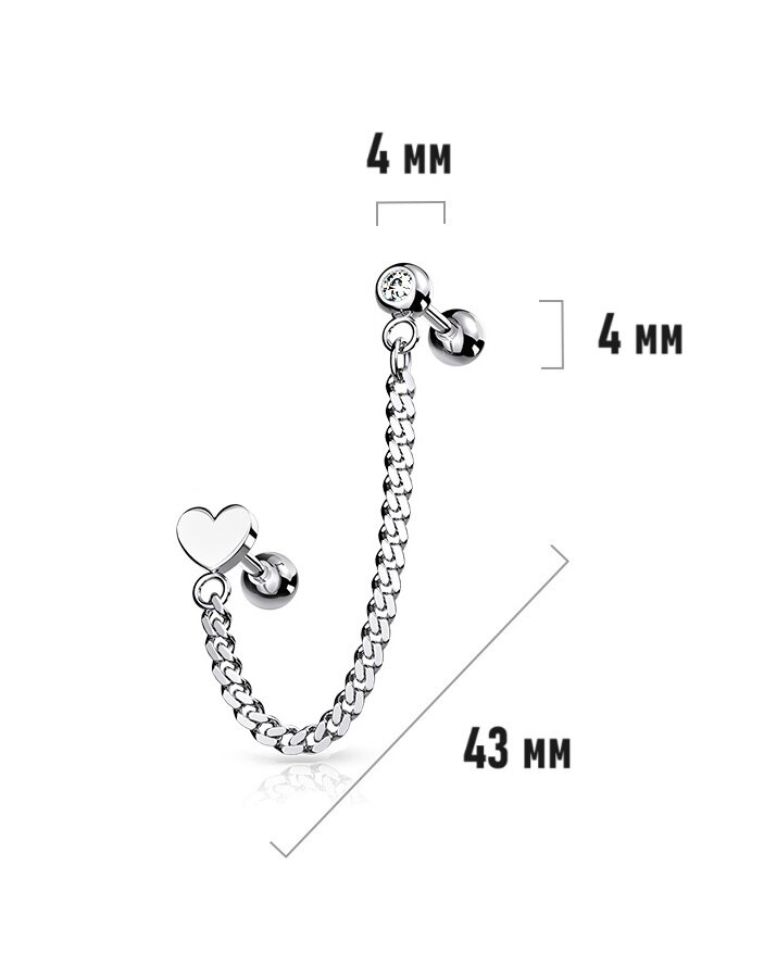 Купить Кафф из стали с цепочкой и сердечком Spikes California (хирургическая сталь)