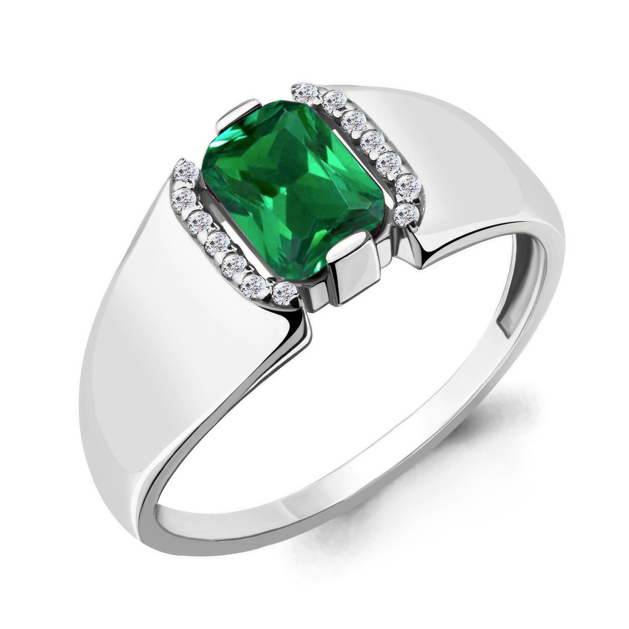 Серебряное кольцо Diamant online А68428АГ с фианитом и гидротермальным изумрудом