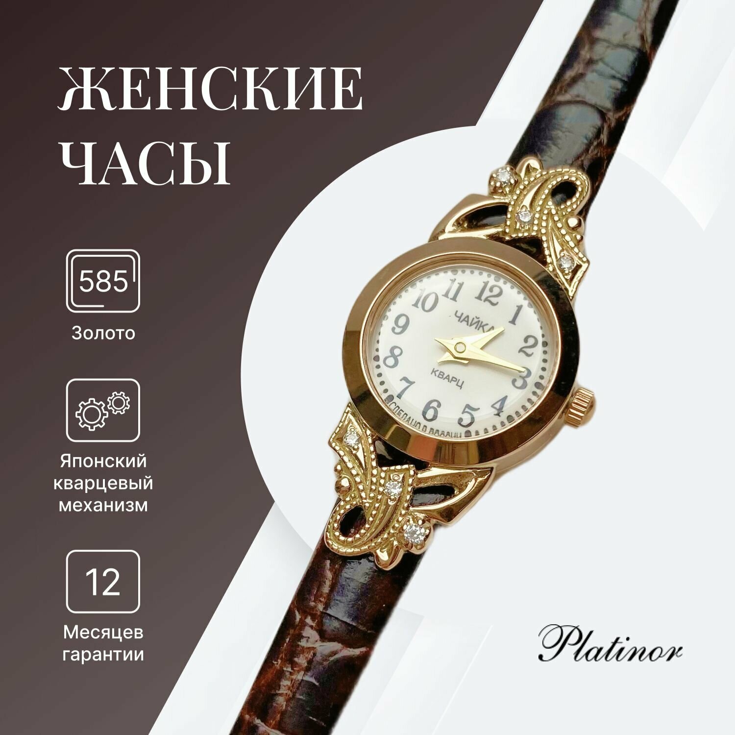 СохранитьЧайка, Часы ювелирные наручные женские золотые "Злата" 44130-156.105 интересное: