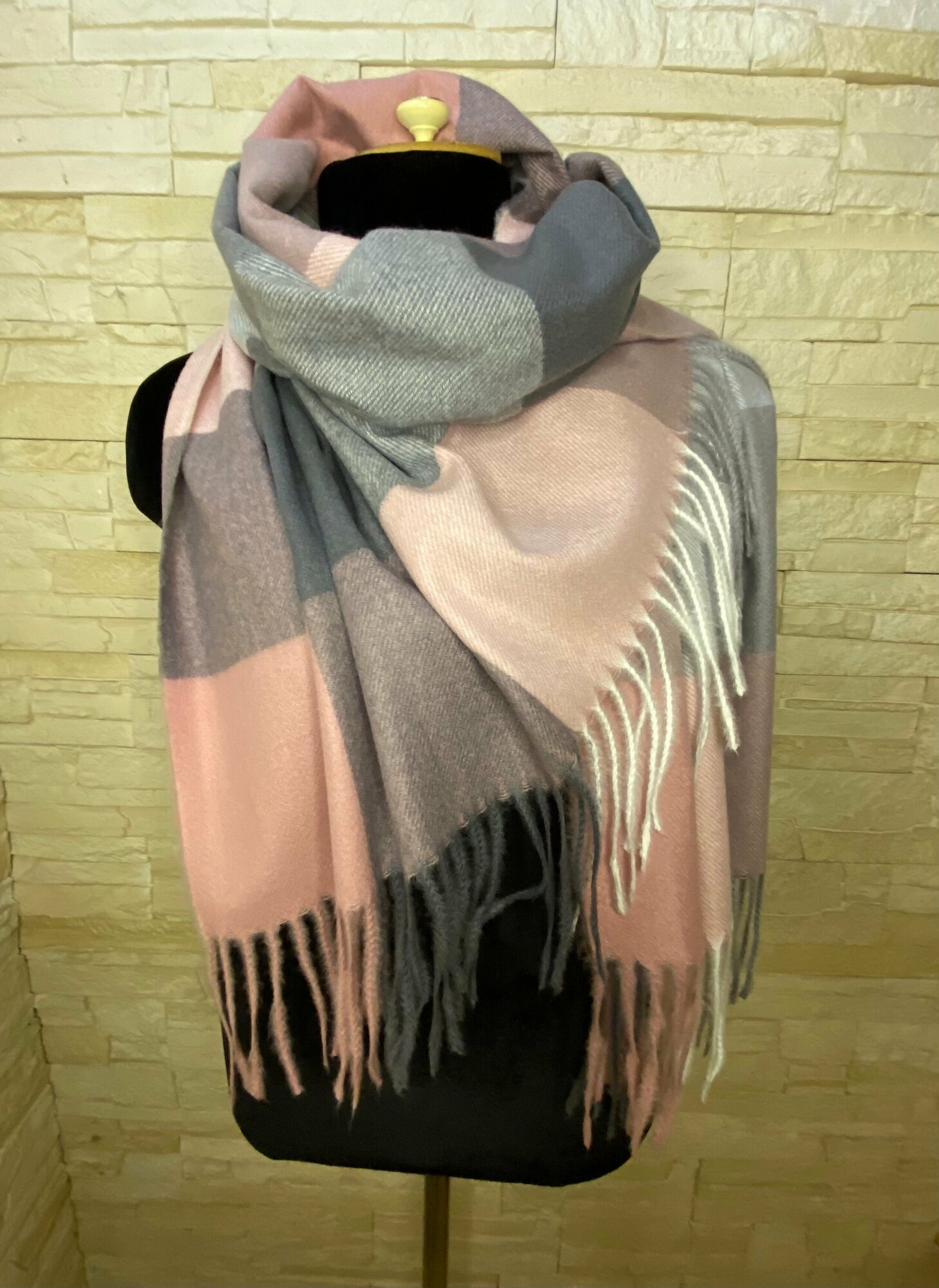 Палантин FAMUYI, 180х80 см, розовый, серый