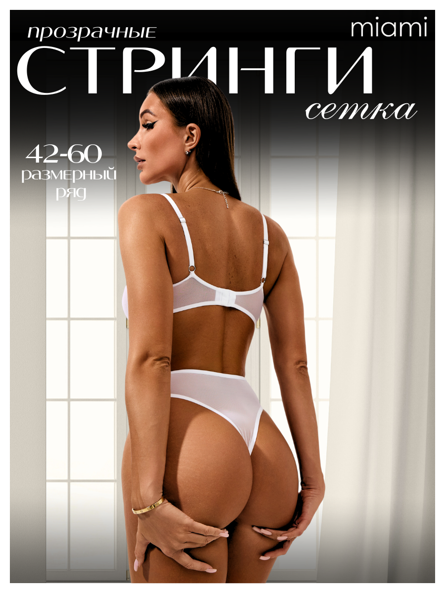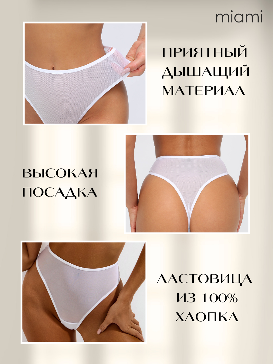 СохранитьТрусы женские стринги прозрачные, размер 48, высокая посадка, Miami, сетка, белые интересное: