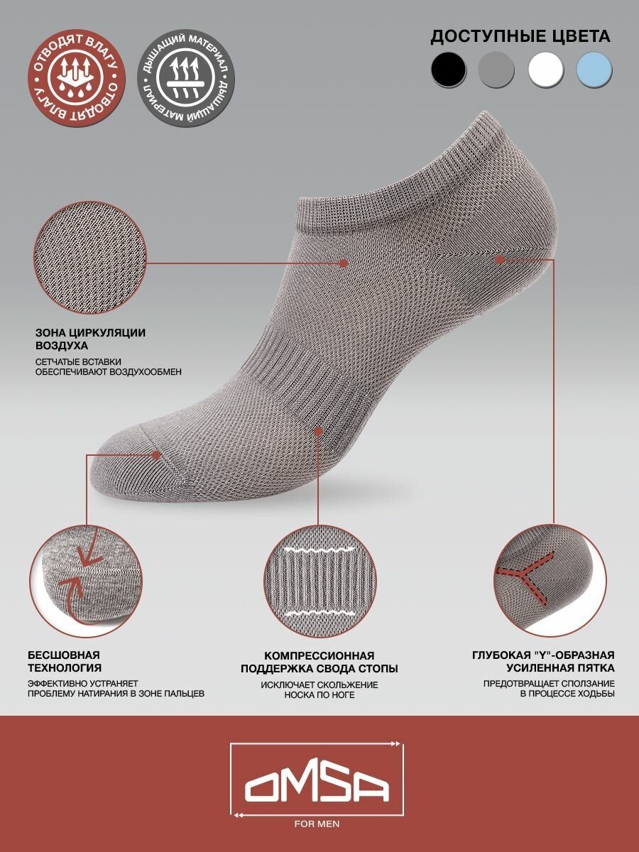 Носки мужские OMSA ACTIVE 119, летние, набор 5 пар, Цвет Bianco/Grigio Chiaro/Nero, Размер 42-44