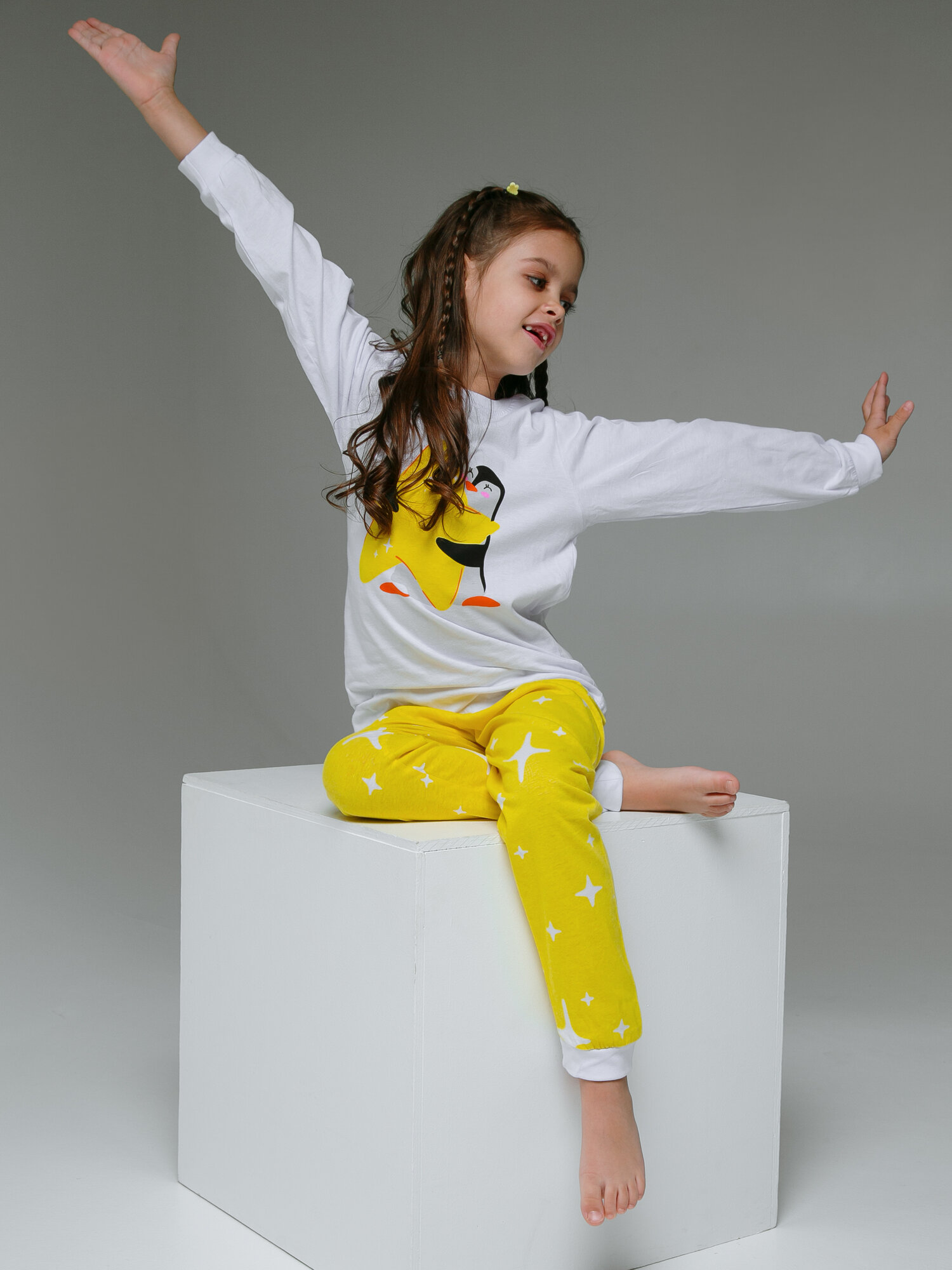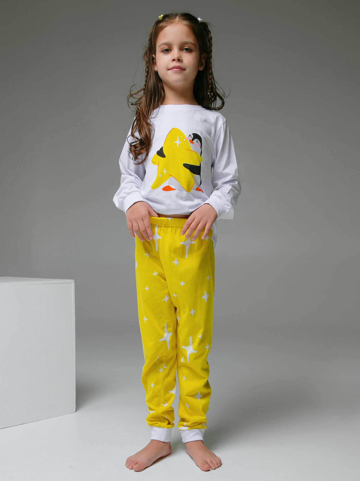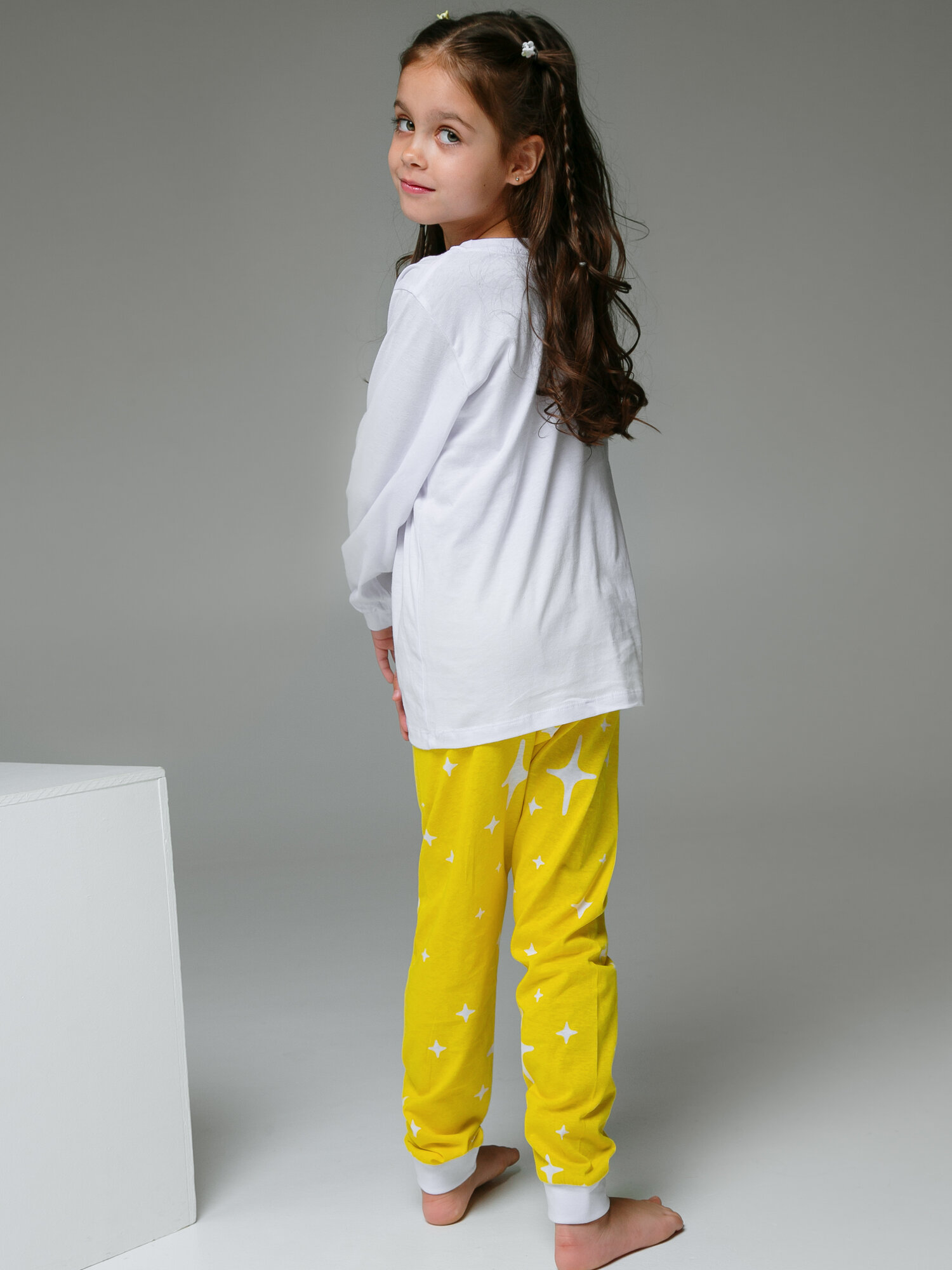 Пижама Ohana kids Девочкам и мальчикам, размер 122, белый/желтый