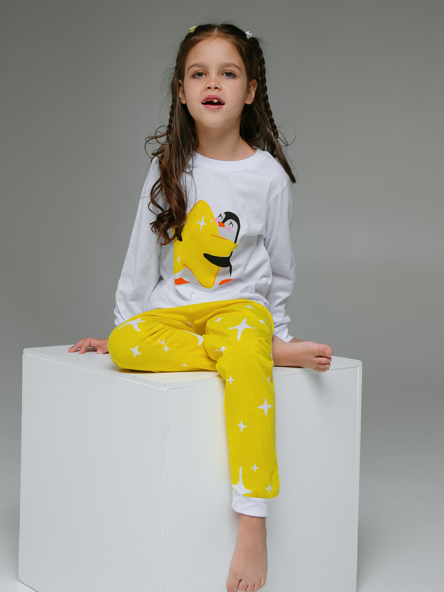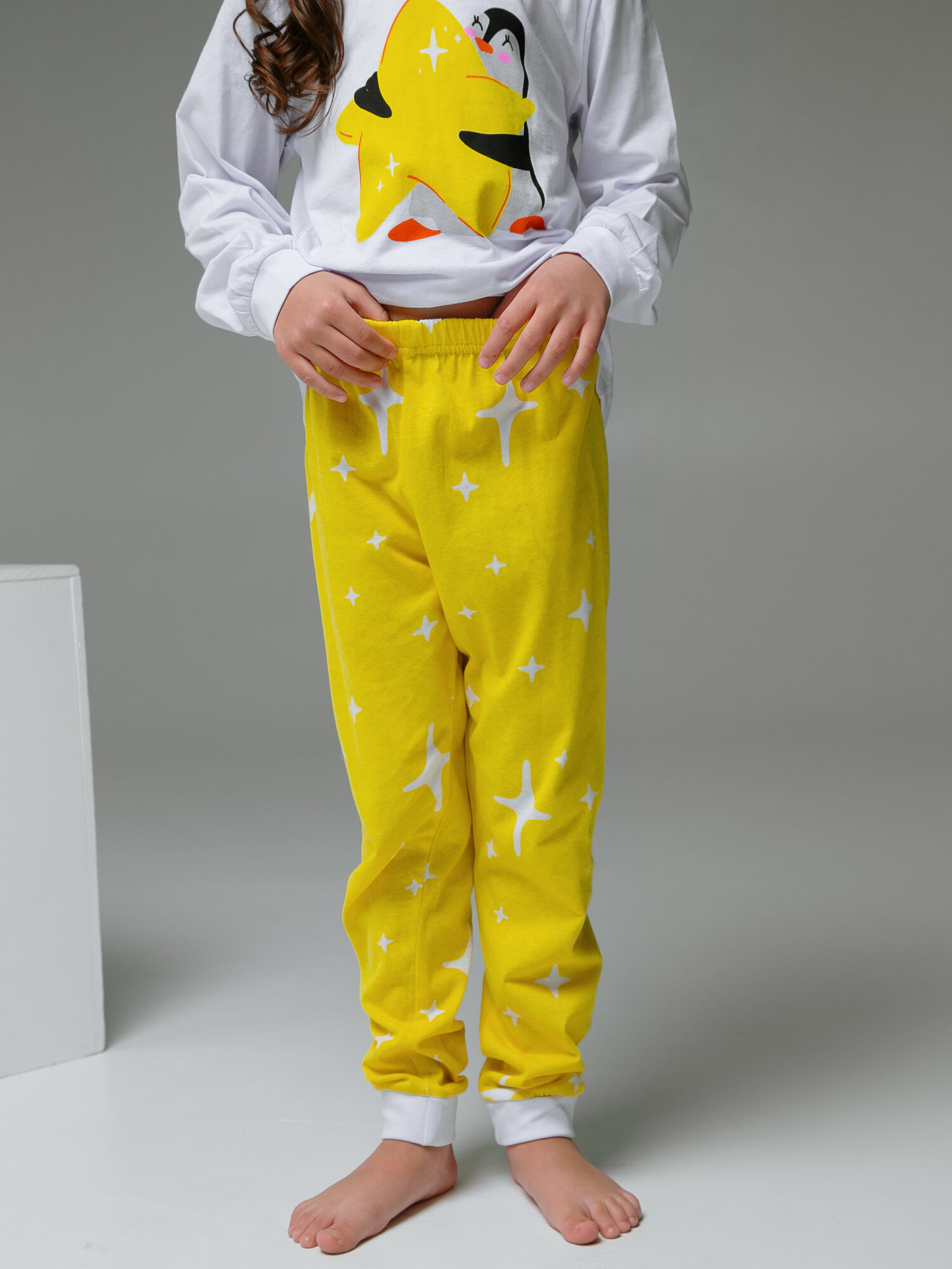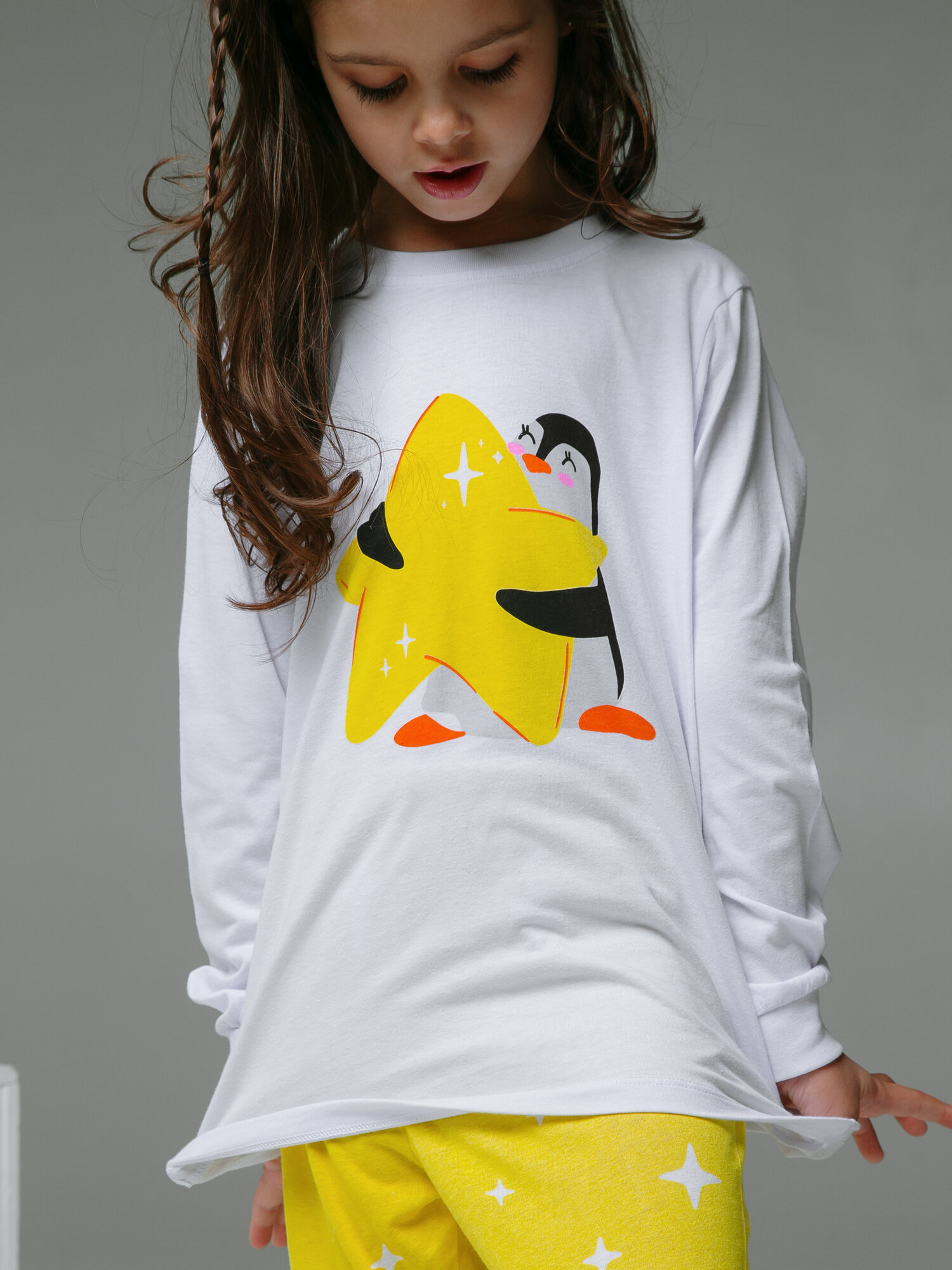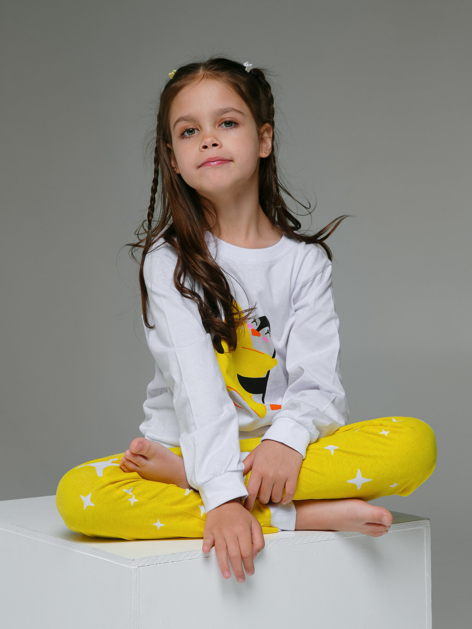 Пижама Ohana kids Девочкам и мальчикам, размер 122, белый/желтый