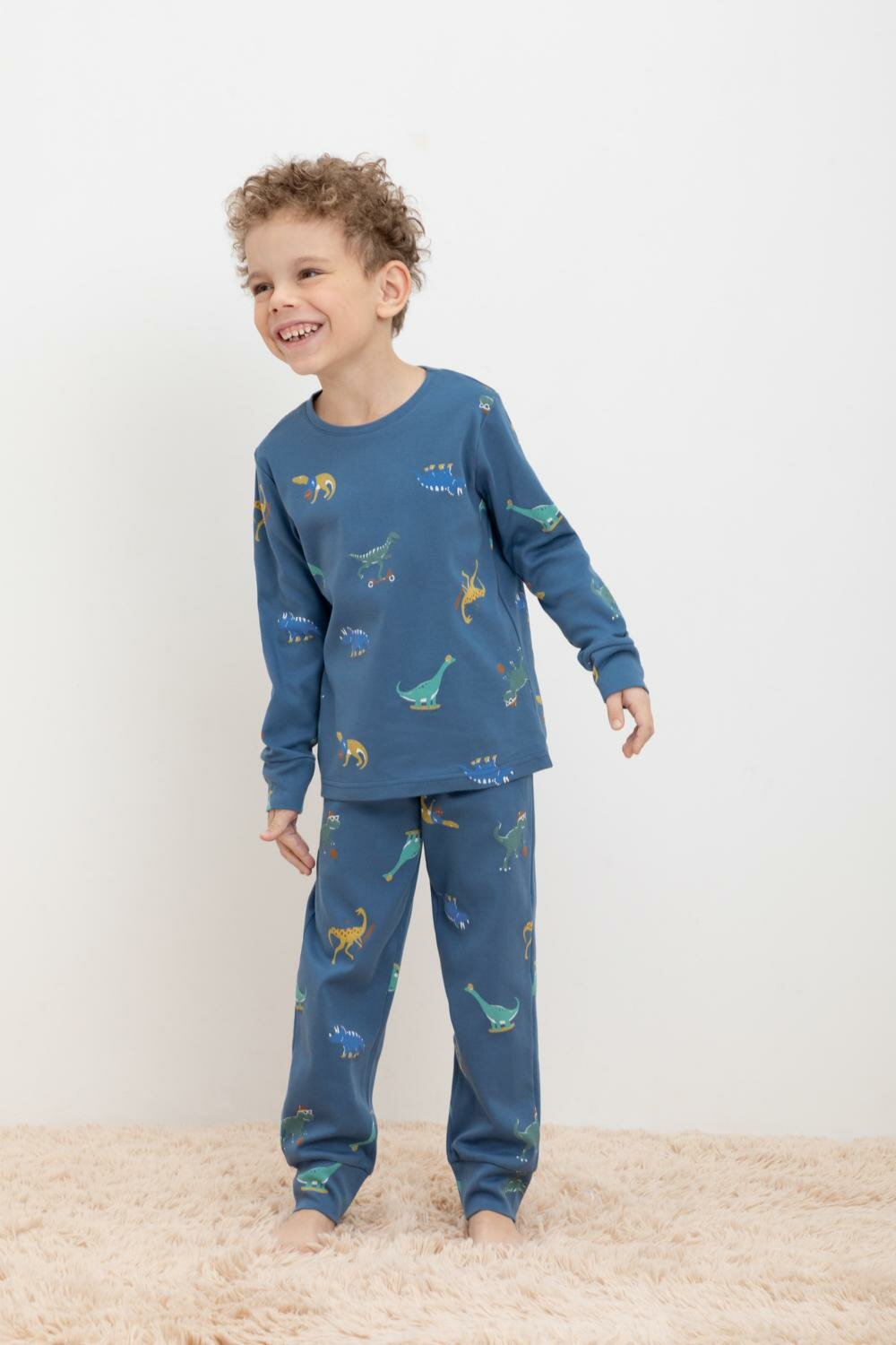 Комплект пижамы для мальчика, Crockid К 1552/синяя волна,дино спортсмены пижама дет р 64/122