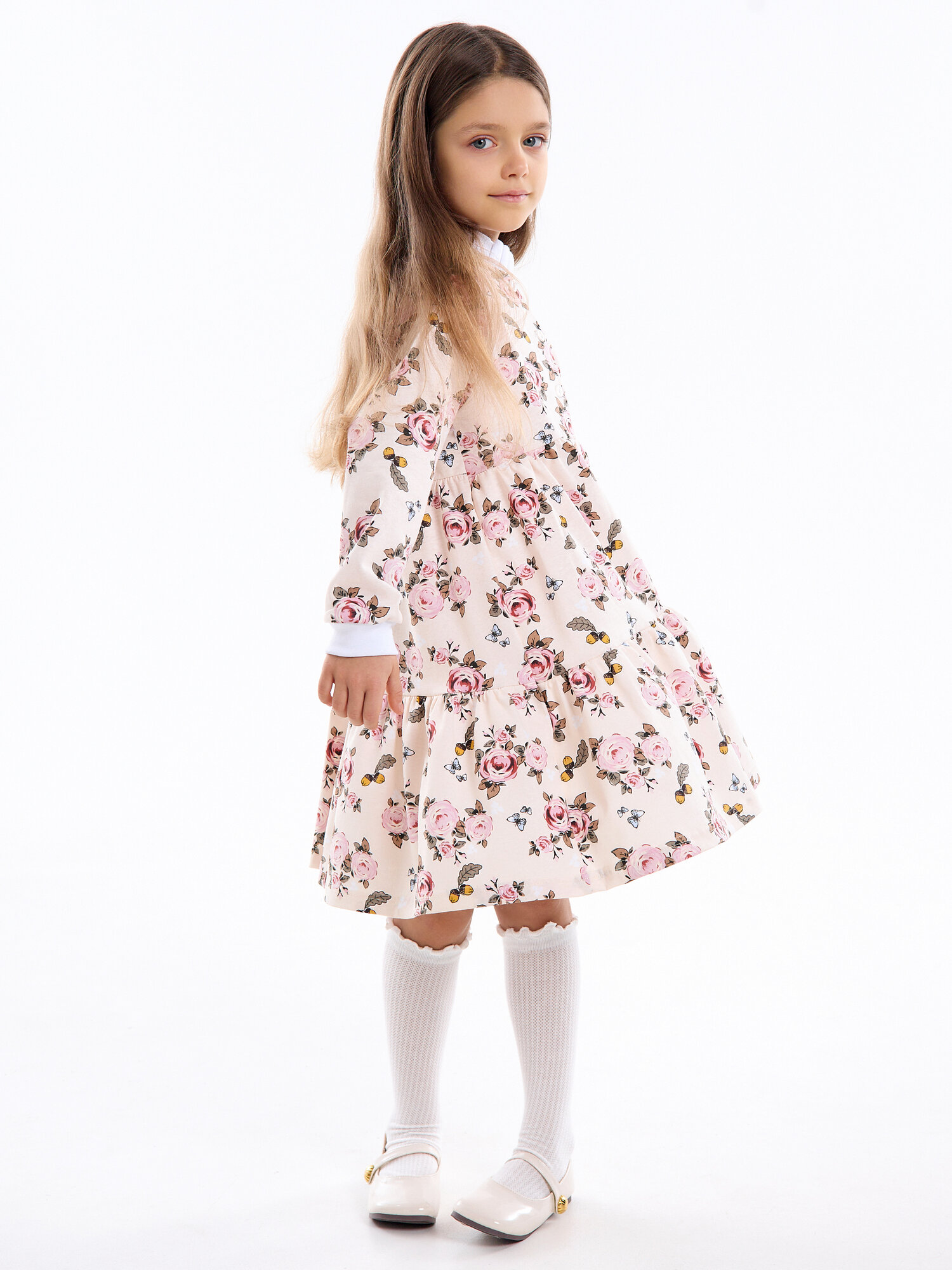 Легкое платье с длинным рукавом, розовый пион, размер 128