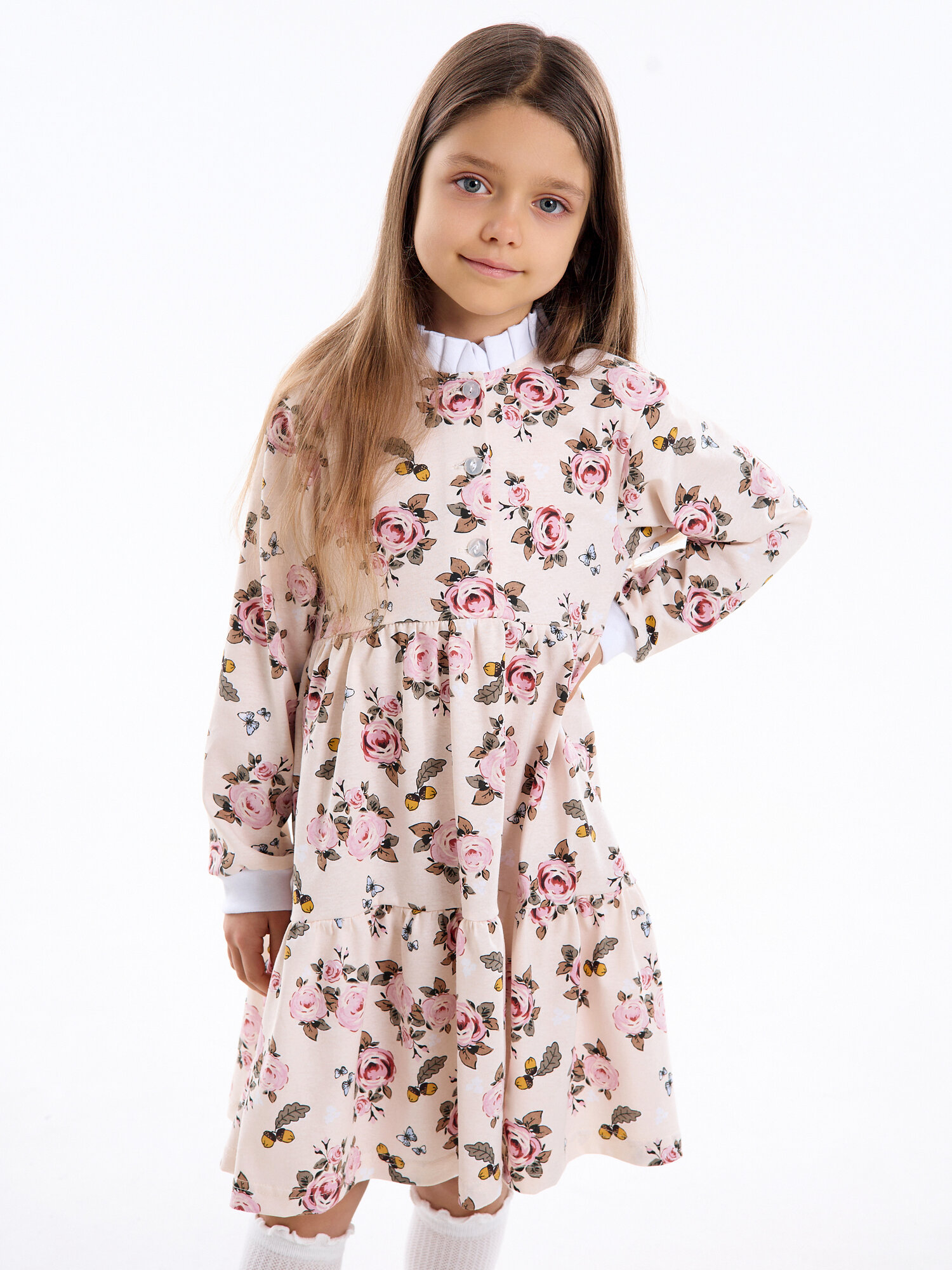 Легкое платье с длинным рукавом, розовый пион, размер 122