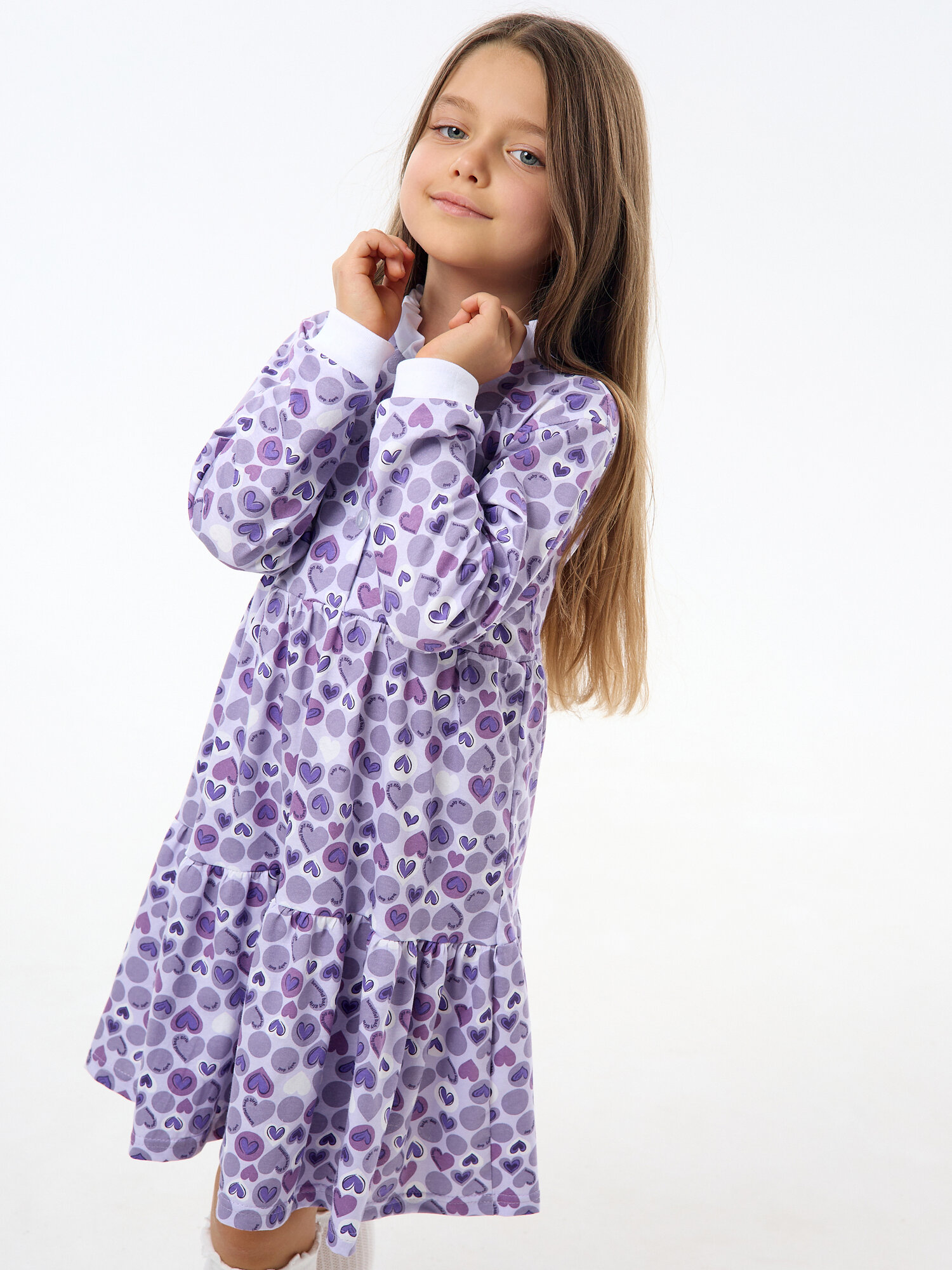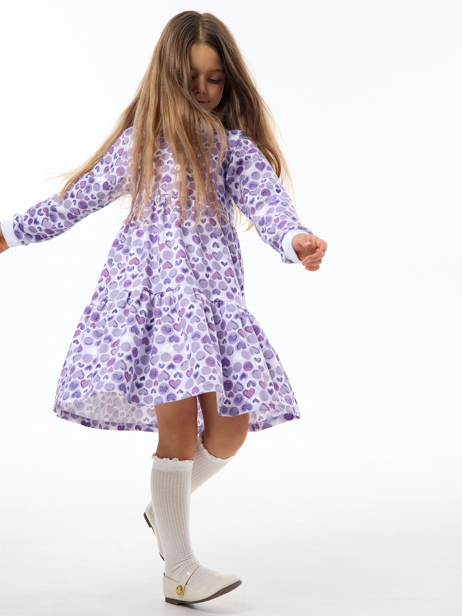 Легкое платье с длинным рукавом, фиолетовая полянка, размер 122
