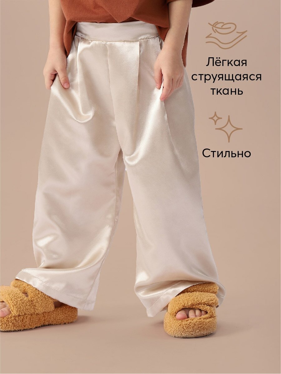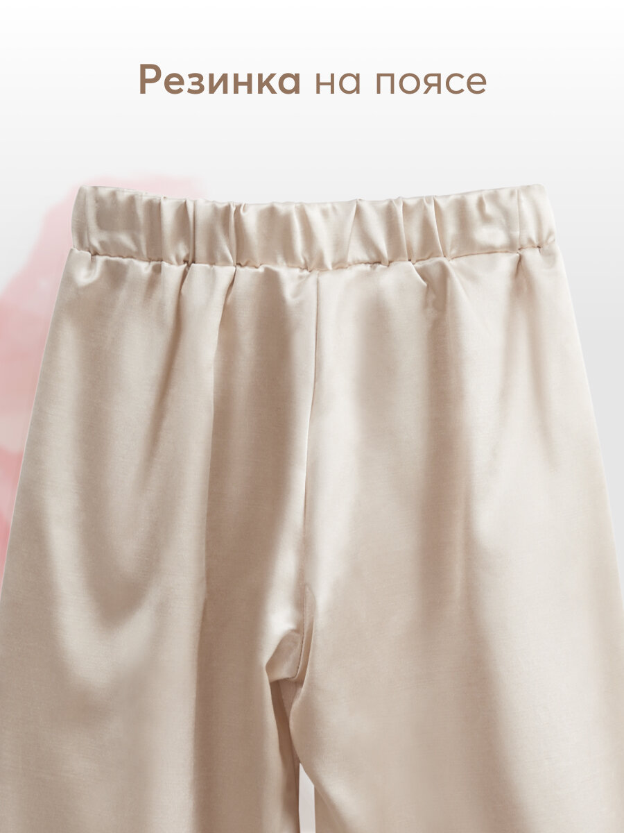 Сохранить88170, Брюки детские Happy Baby свободные штаны атласные, штаны для мальчика и девочки, на лето, штаны на резиночке, бежевые, размер 110-116 интересное: