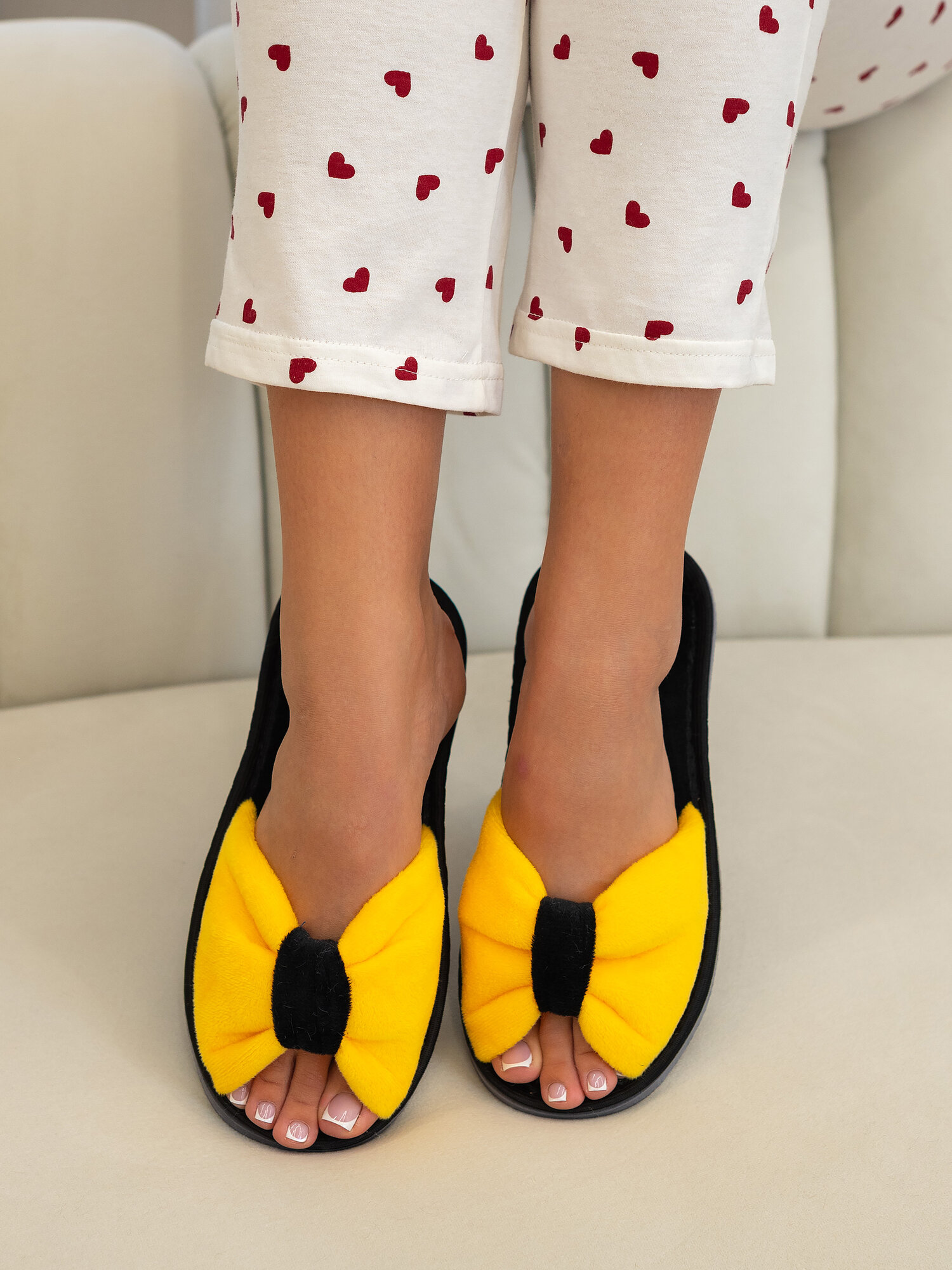 Тапочки женские Talaria Golden плюш банты, черно-желтый, размер 36-37