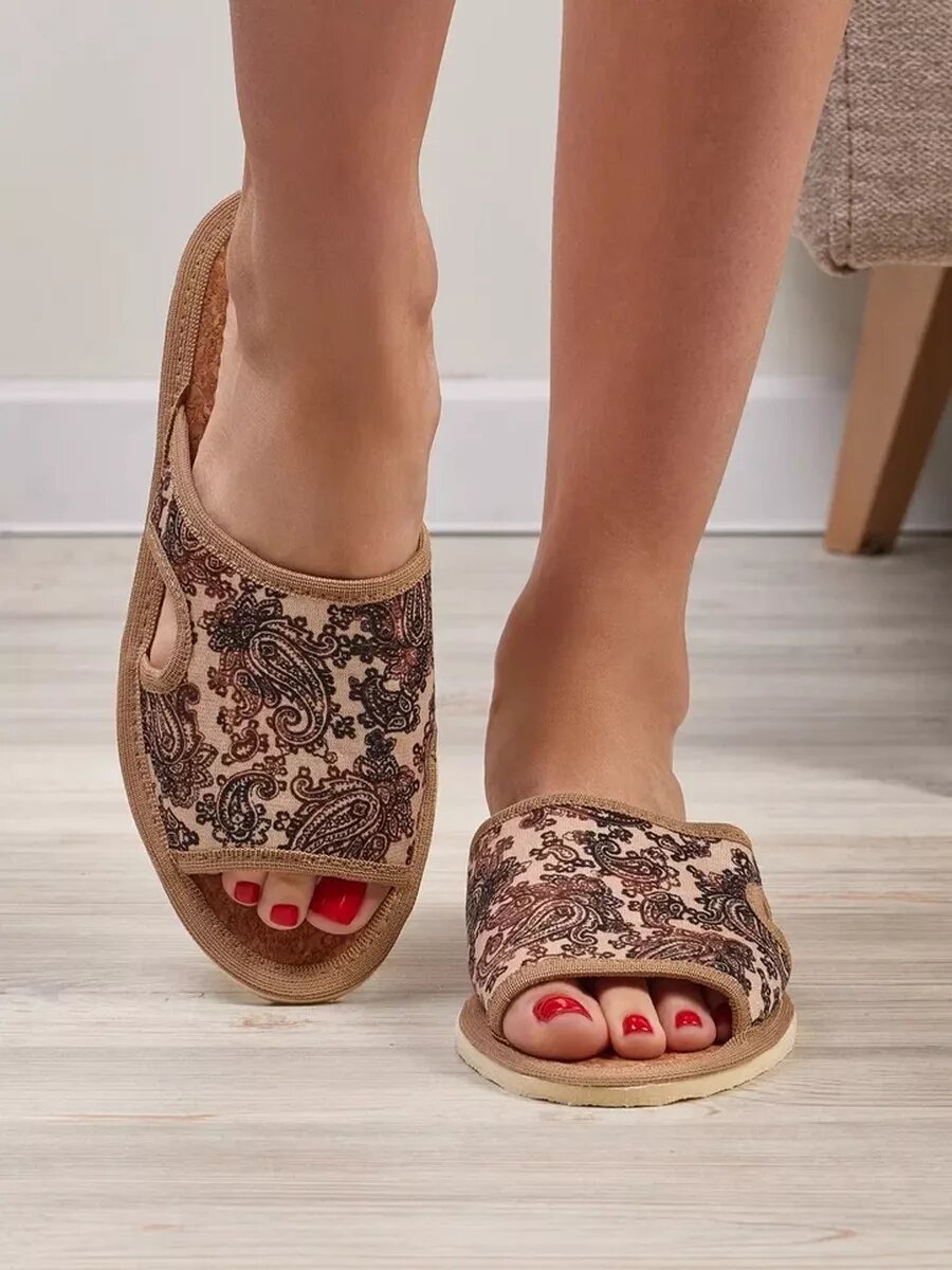 СохранитьЖенские домашние тапочки "LepiloV", открытые, на пробковой стельке. Размер 41. Бежевые огурцы. интересное: