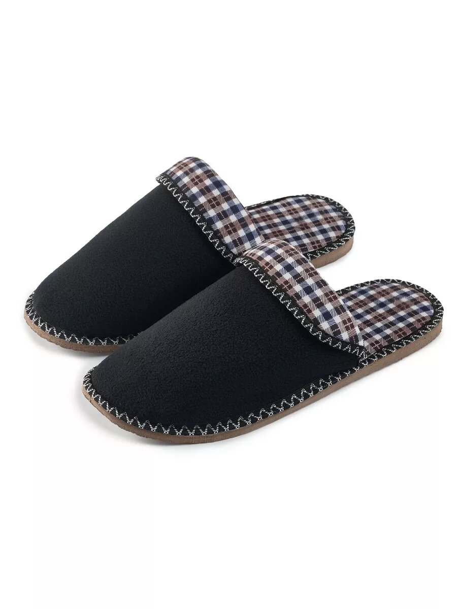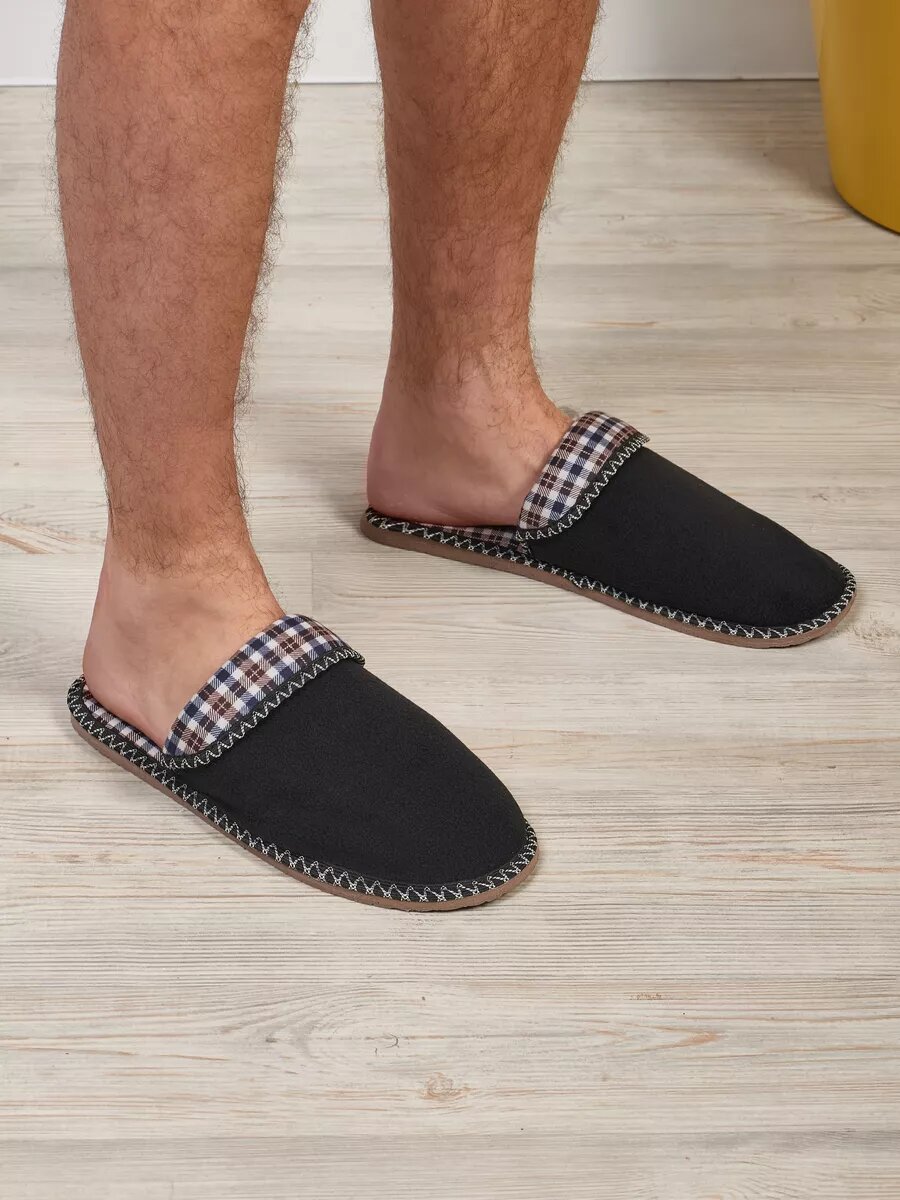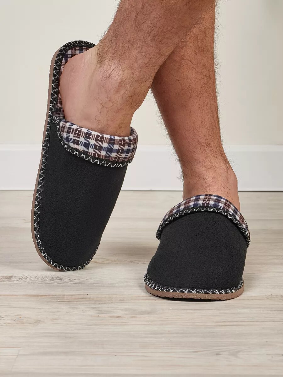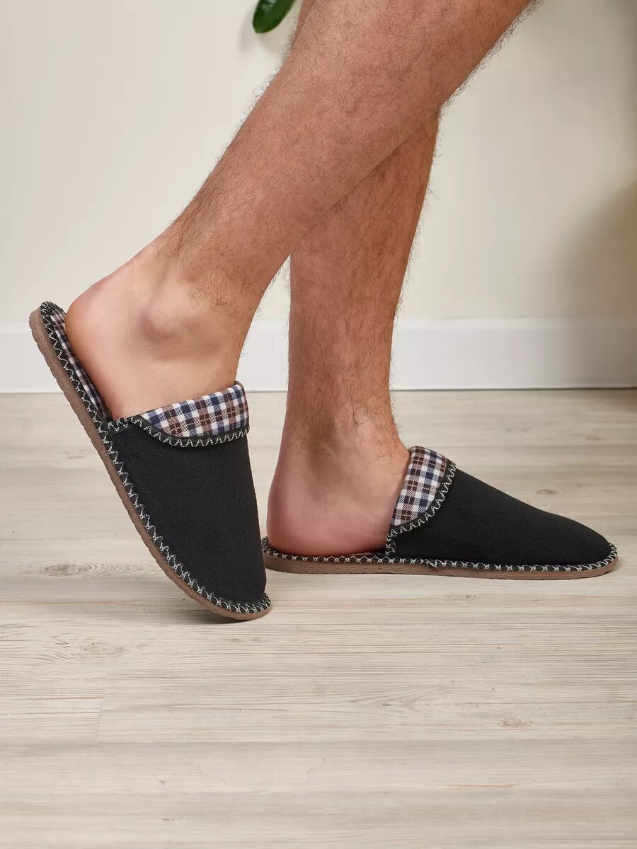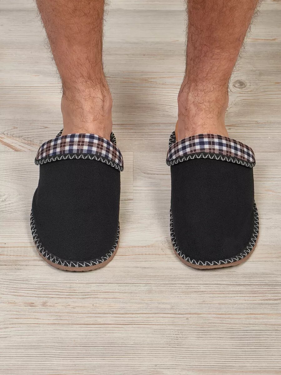 СохранитьМужские домашние тапки "LepiloV", закрытые, на текстильной стельке. Размер 45. Чёрный флис клетка сине-коричневая. интересное: