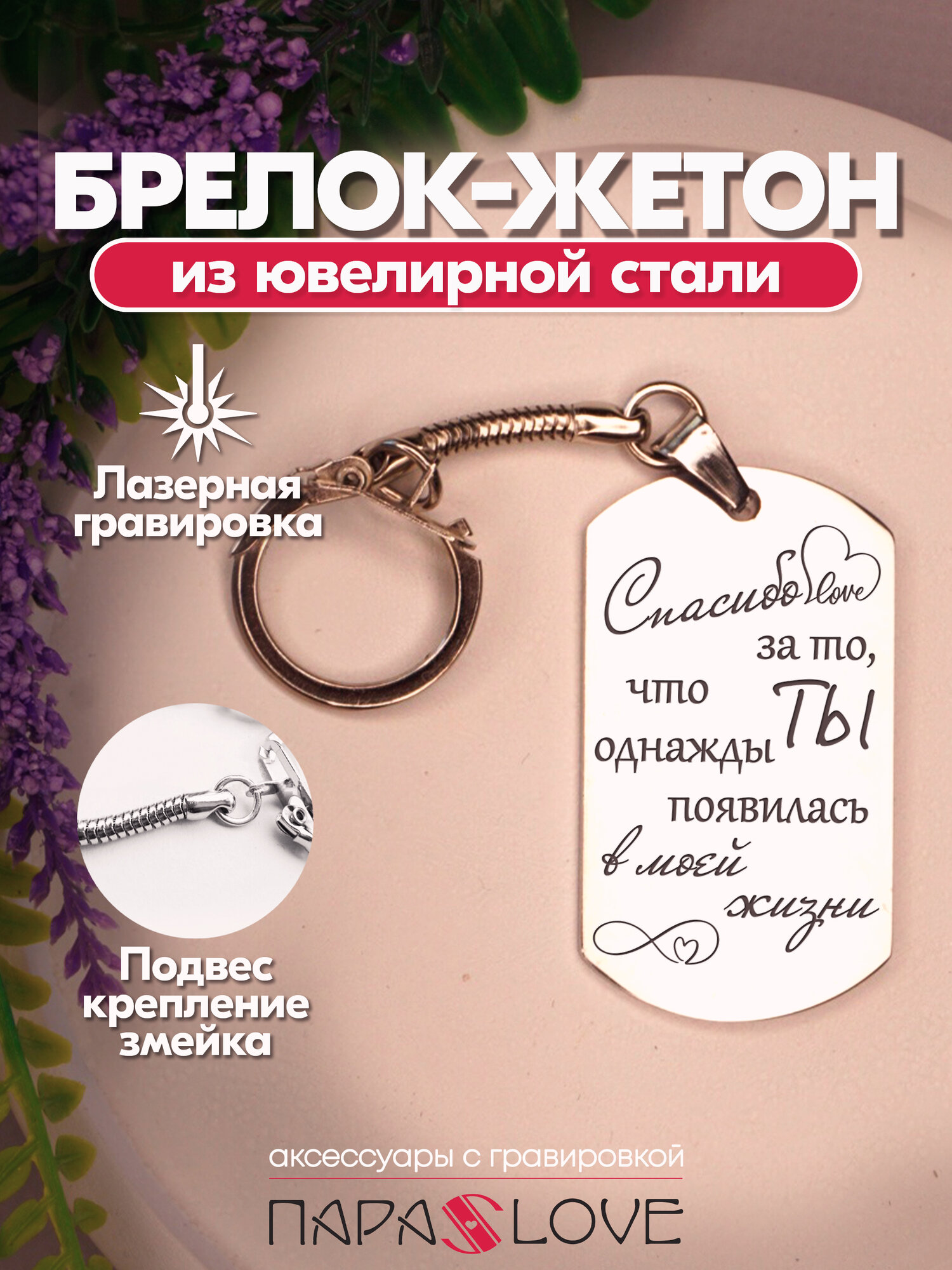 Купить Брелок для ключей с надписью "Спасибо за то, что однажды ты появилась в моей жизни". Металлическая подвеска в автомобиль с гравировкой. Брелоки на сумку, рюкзак, на ключи от авто и дома.