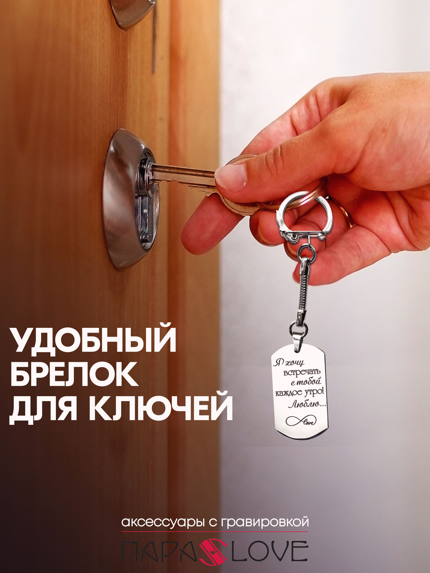 Купить Брелок для ключей "Я хочу встречать с тобой каждое утро! Люблю..." . Металлическая подвеска в автомобиль с лазерной гравировкой. Брелоки на сумку, рюкзак, на ключи от авто и дома. Аксессуары в подарок мужчине жетон на ключи машины