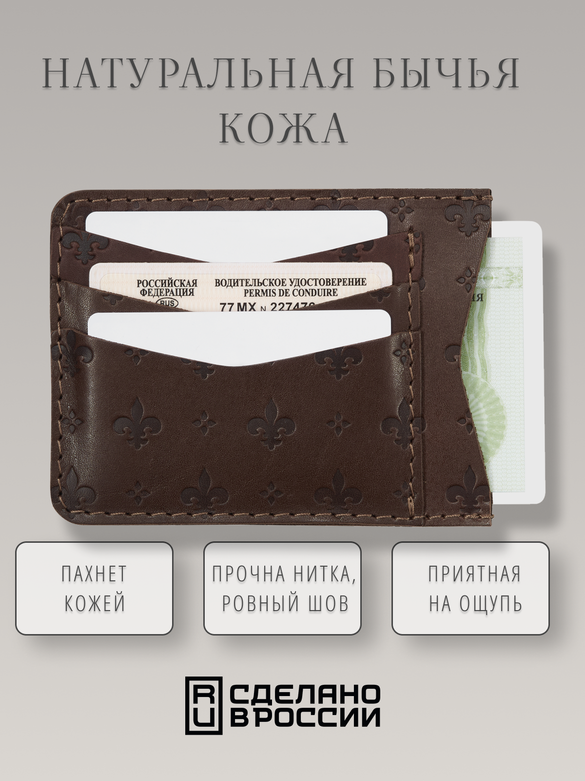 Кожаный картхолдер для автодокументов и карт с тиснением, коричневый