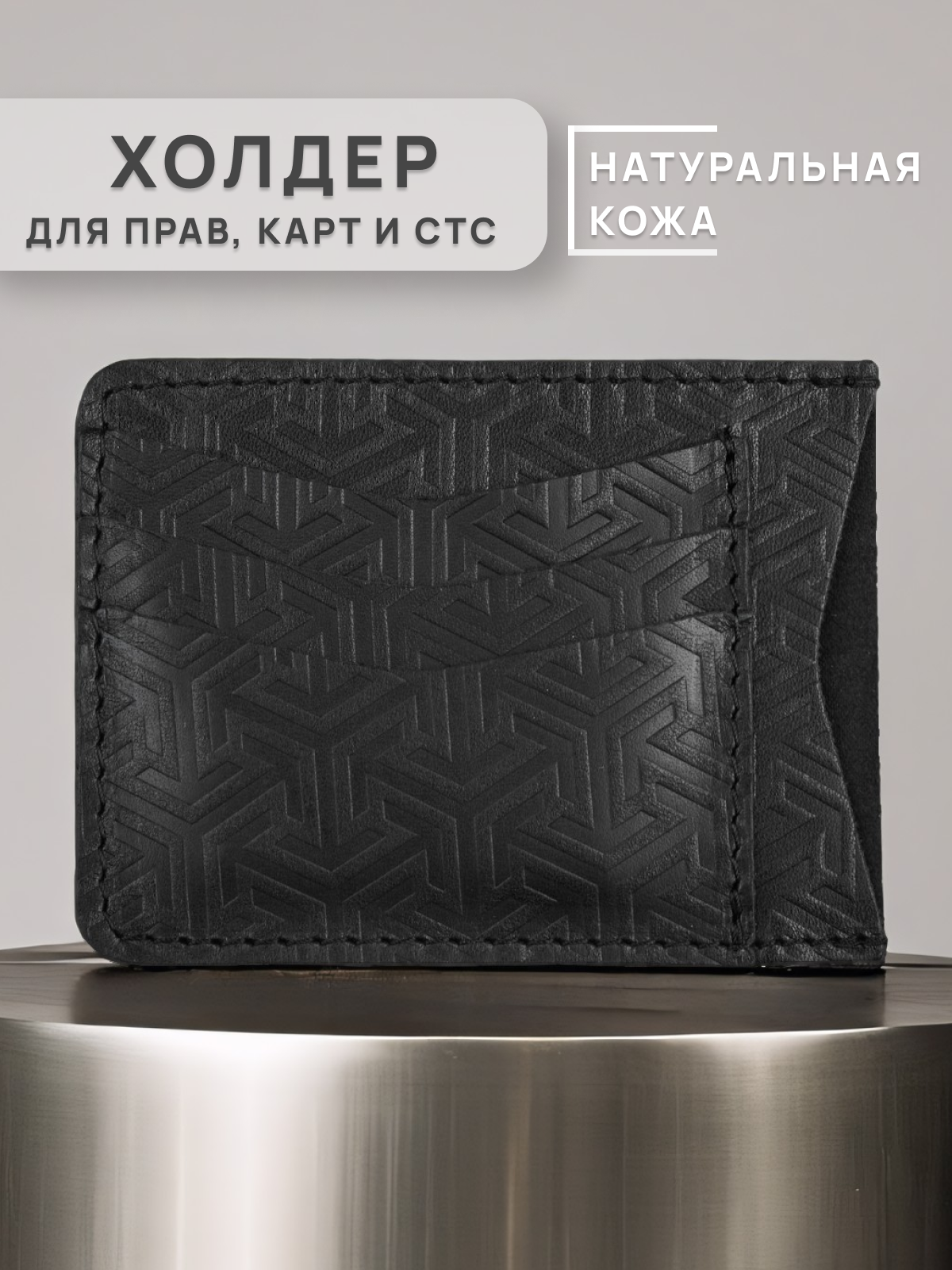 Купить Кожаный картхолдер для автодокументов и карт с тиснением, черный