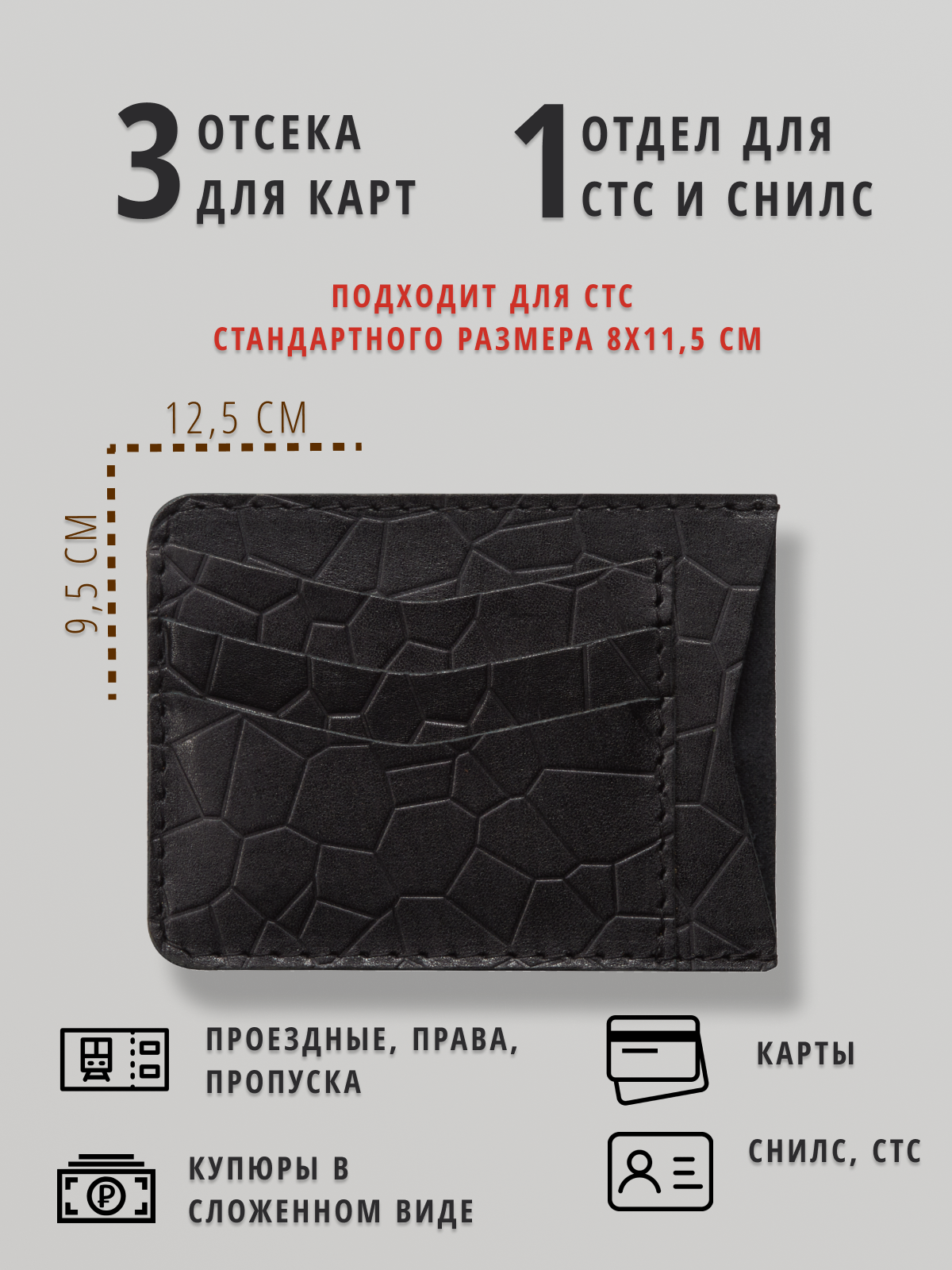 Кожаный картхолдер для автодокументов и карт с тиснением, черный