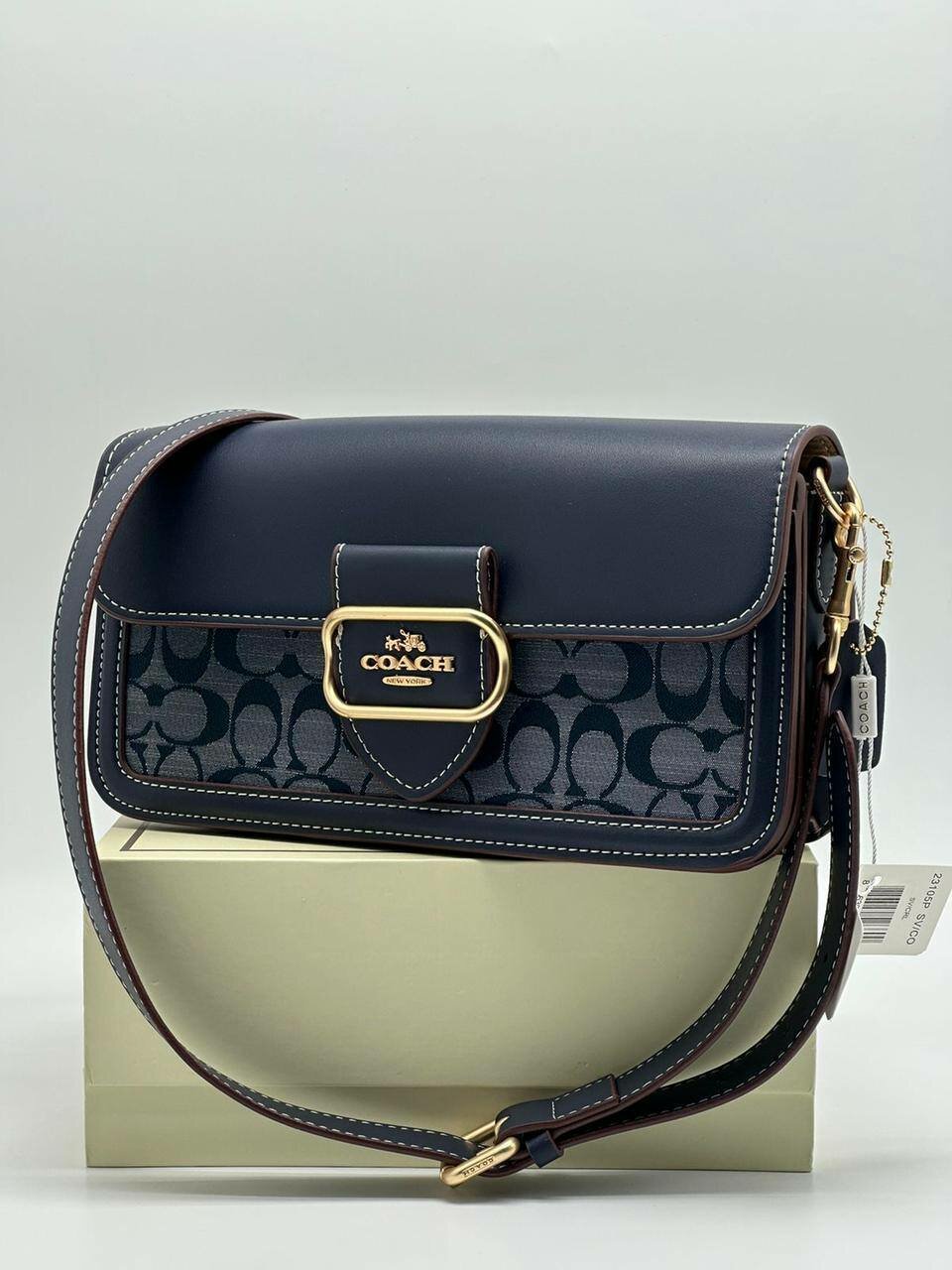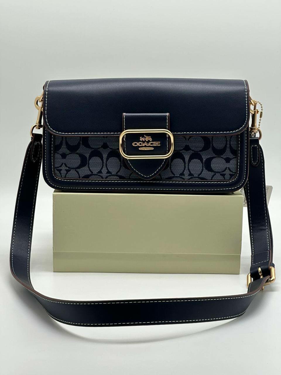 Сумка кросс-боди Coach, фактура гладкая, зернистая, матовая, синий, белый