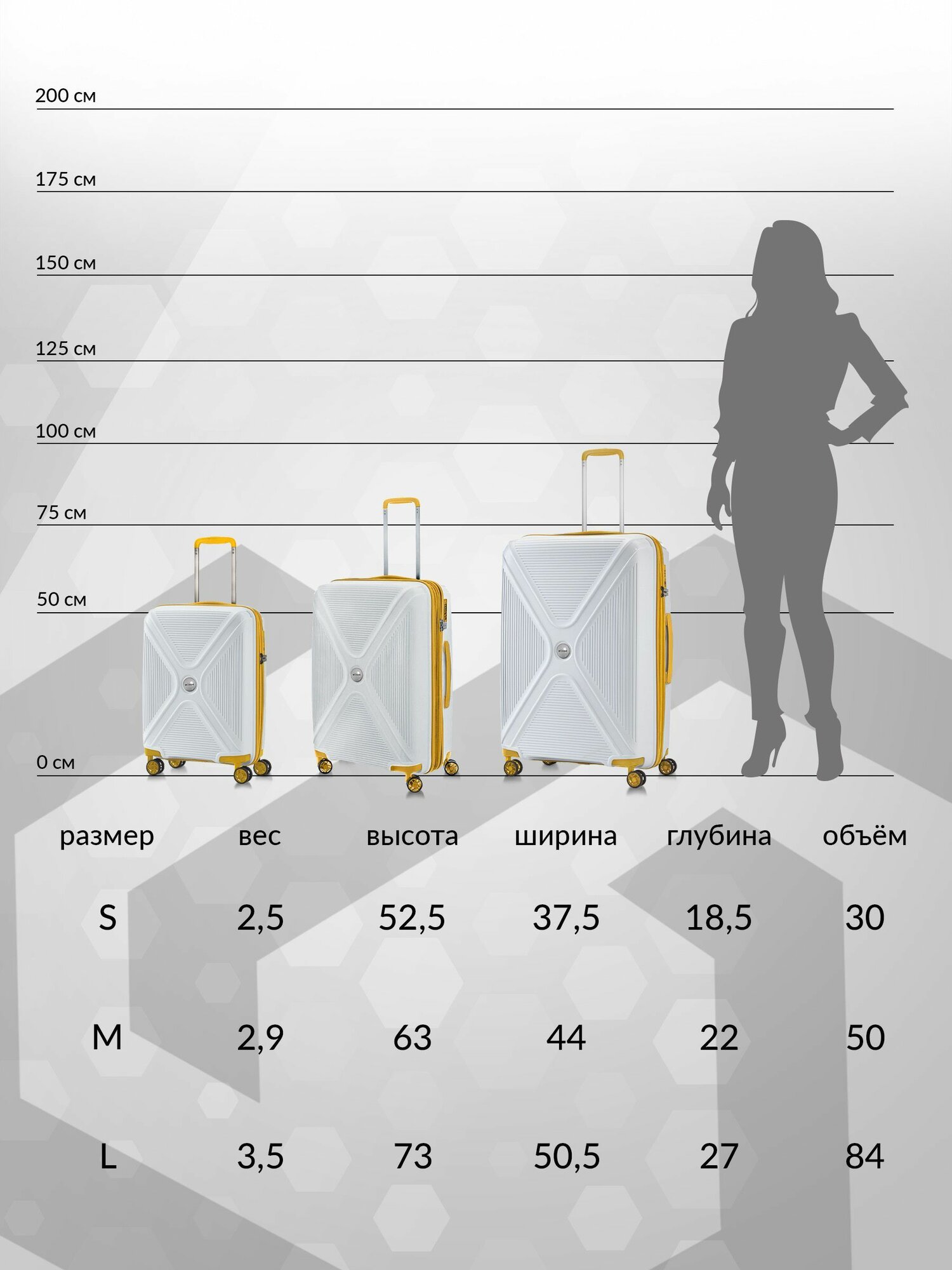 Чемодан на колесах M средний, белый - Чемодан полипропилен, семейный Lcase