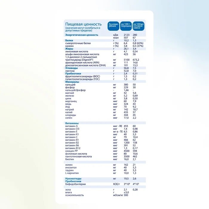 | Дополнительная информация | Грудное молоко - лучшее питание для вашего малыша! ВОЗ рекомендует сохранять грудное вскармливание в течение первых 6 месяцев жизни и, по возможности, продолжать его так долго, как это возможно. Перед принятием решения о выборе питания обратитесь за советом к медицинскому работнику. |