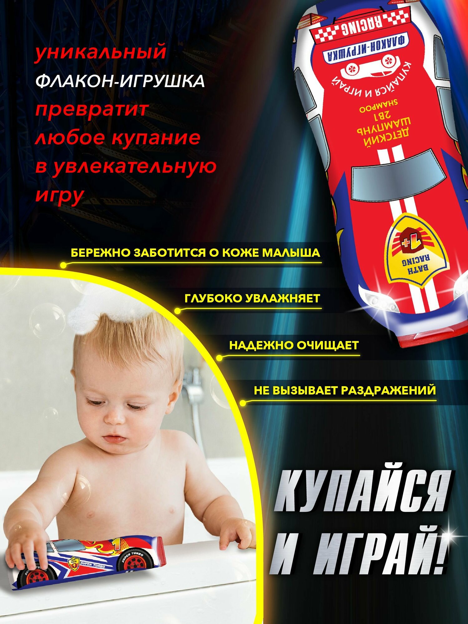 Гонки Детский шампунь для волос 2в1 Bath Racing, 300 мл