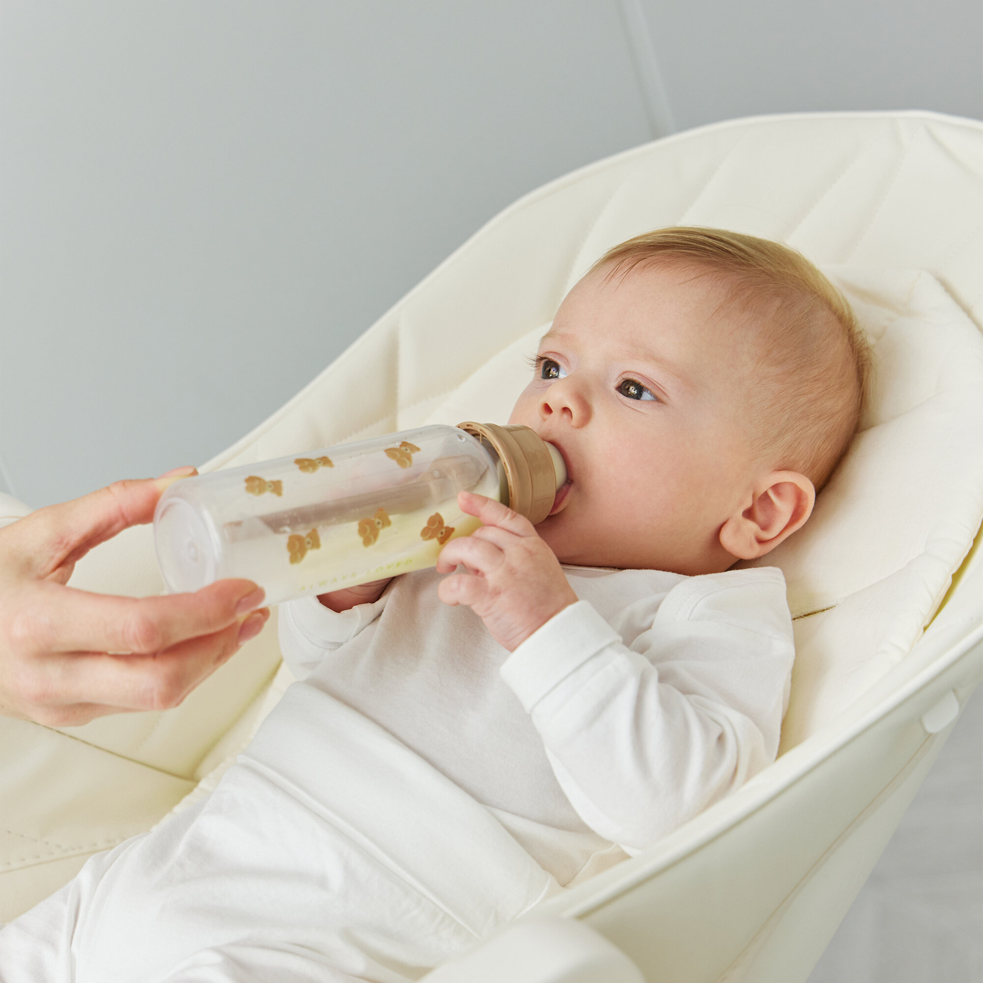 10015, Бутылочка для кормления от 0 месяцев Happy Baby, для новорожденных, 250 мл, серая с гусями