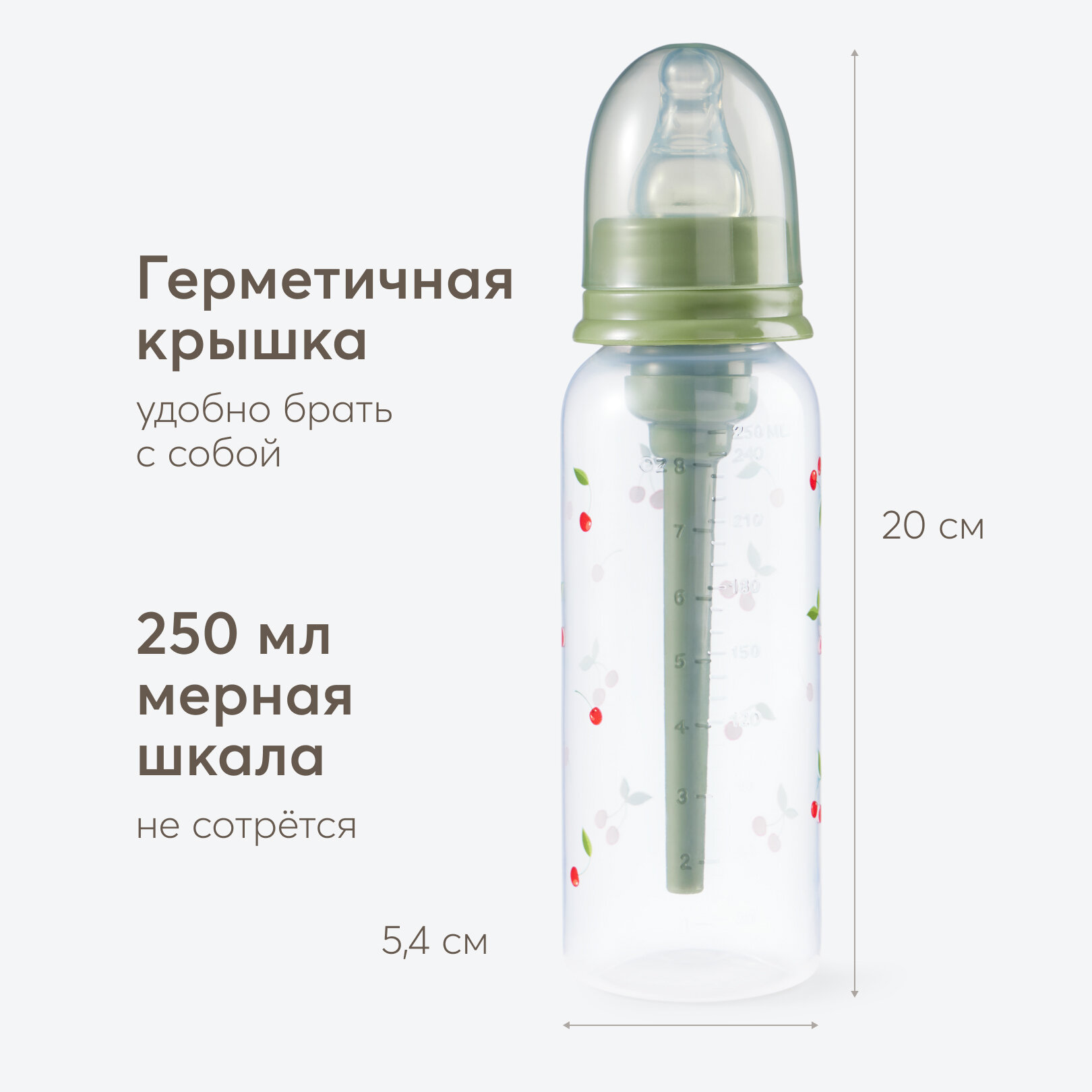 Сохранить10015, Бутылочка для кормления от 0 месяцев Happy Baby, для новорожденных, 250 мл, зеленая с вишенками интересное: