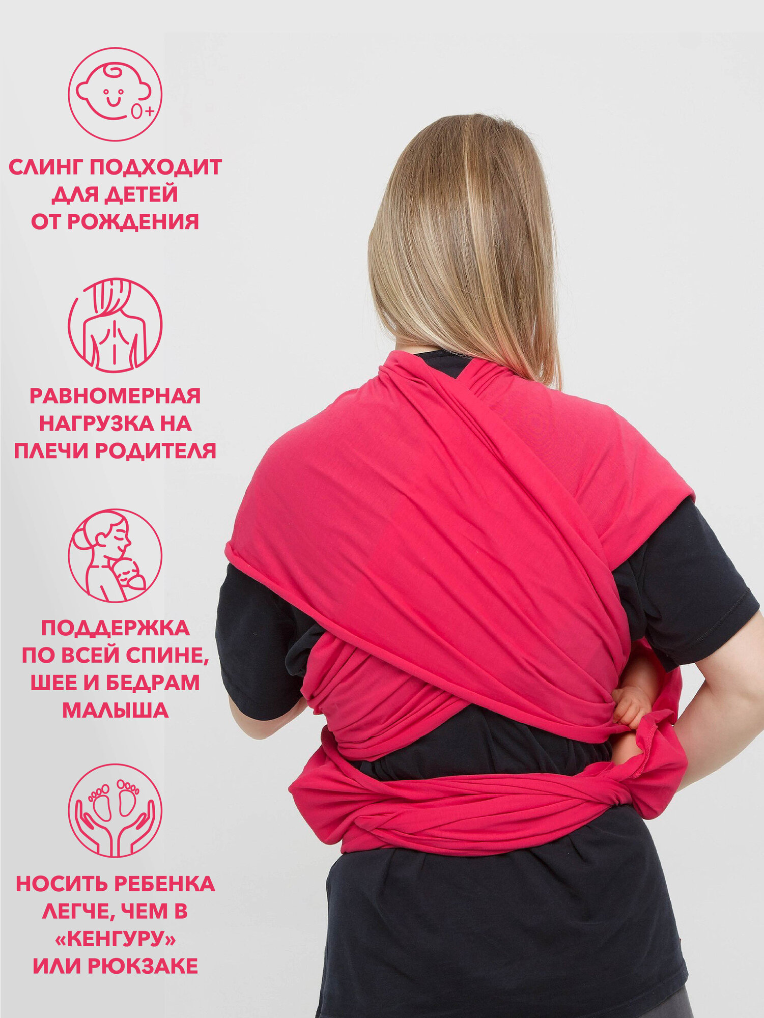 Слинг шарф для новорожденного от YOKA HOME фуксия