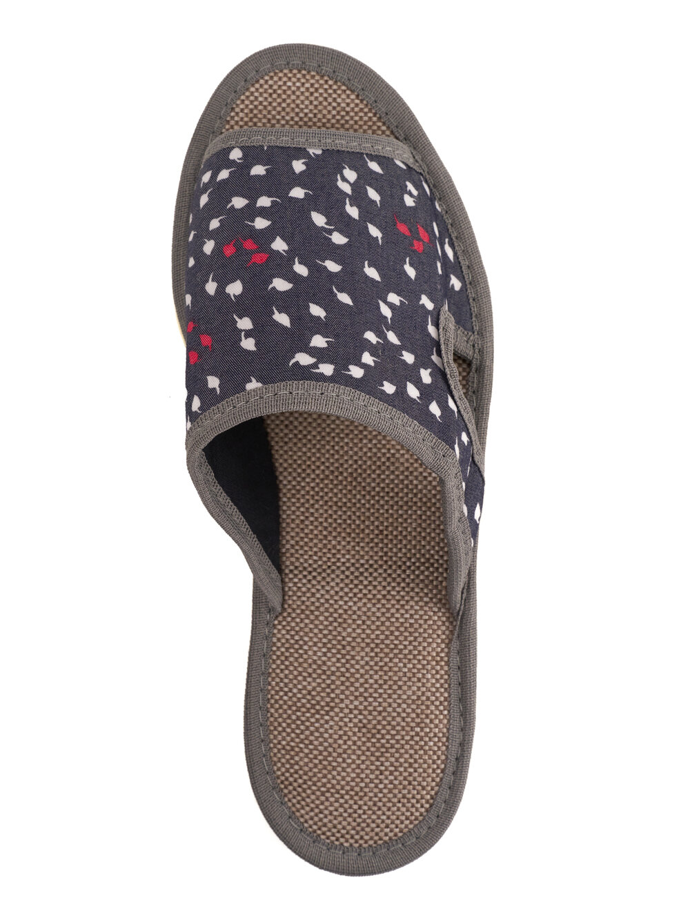 Купить Женские домашние тапочки "LepiloV", открытые, на текстильной стельке. Размер 39. Серый лист красно-белый.