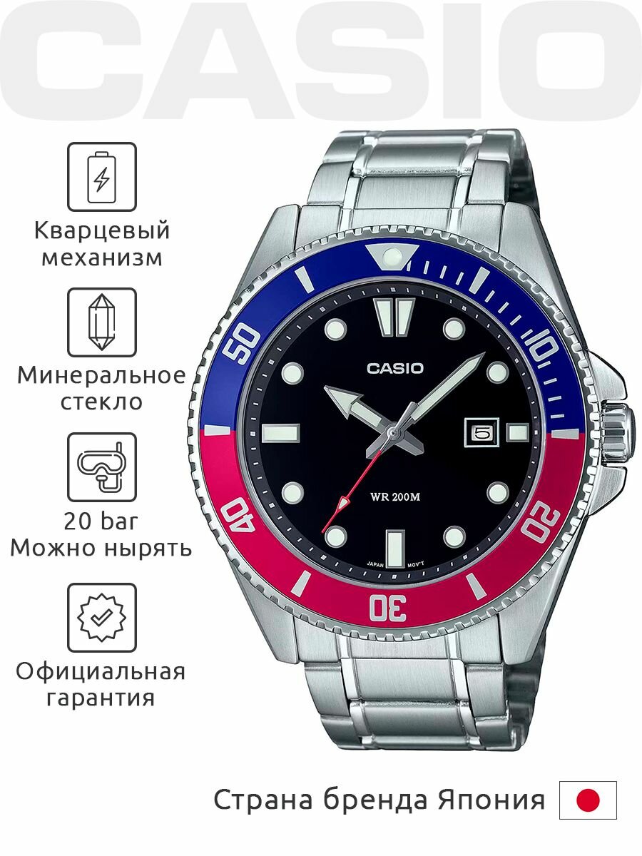 Купить MDV-107D-1A3 Casio наручные часы кварцевые WR200 (20 атм) мужские отображение числа водонепроницаемые, поворотный безель, подсветка стрелок минеральное стекло