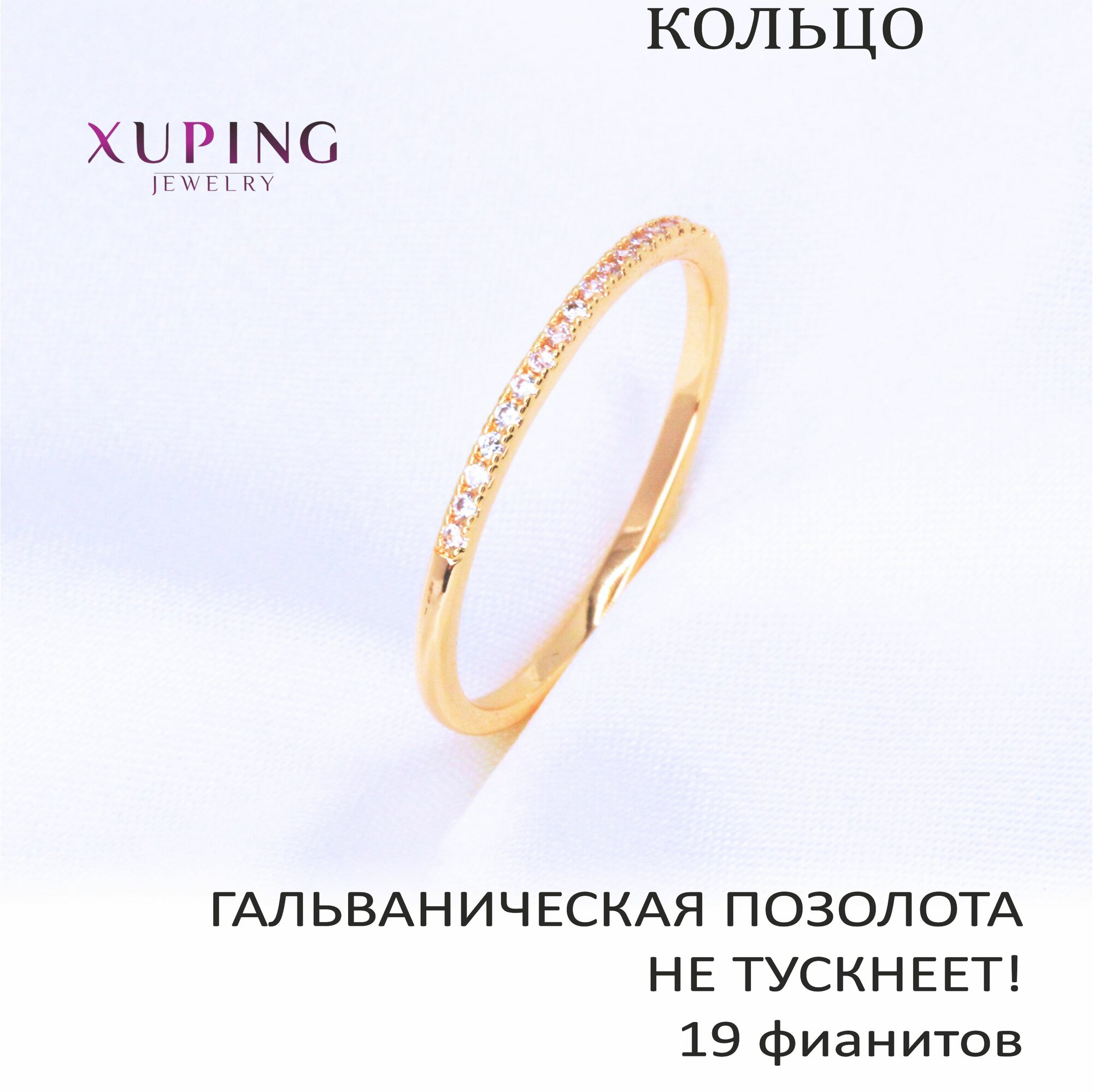 Кольцо тонкое с фианитами, XUPING JEWELRY, гальваническая позолота 18К, р-р 19