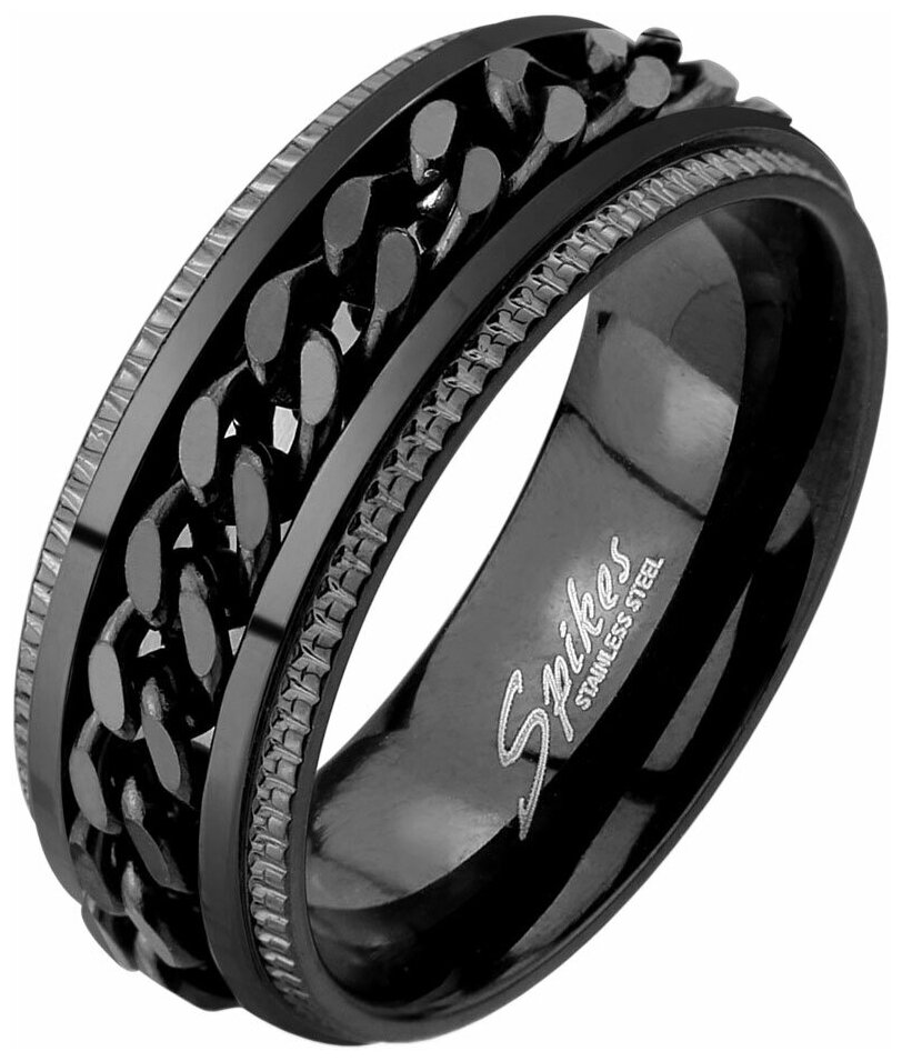 Кольцо спинер с вращающейся цепочкой по центру, нержавеющая сталь, размер 19, черный