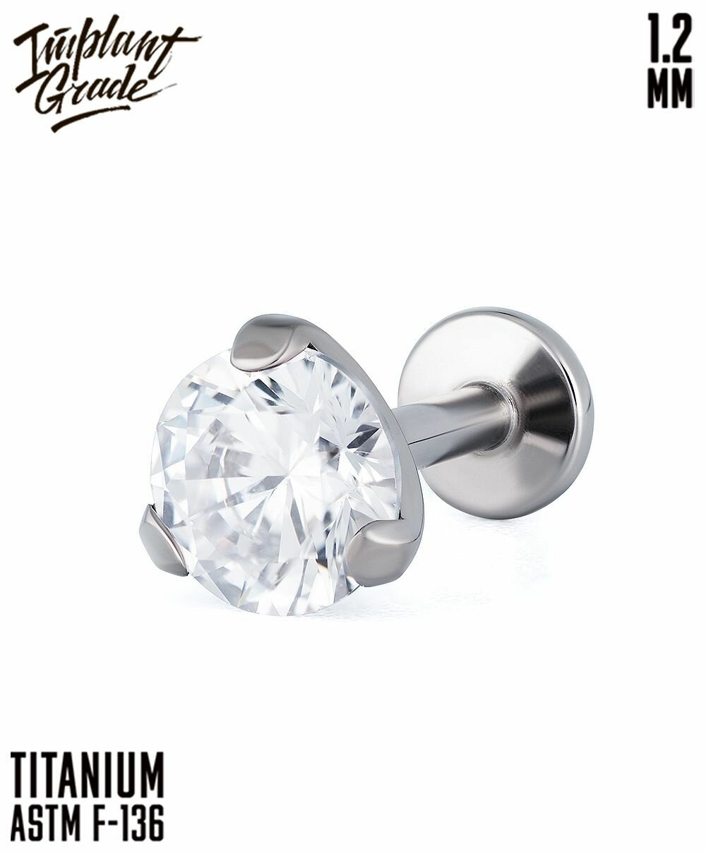 Пирсинг Implant Grade лабрет титан Crystal gem 1.2 мм - 3 мм