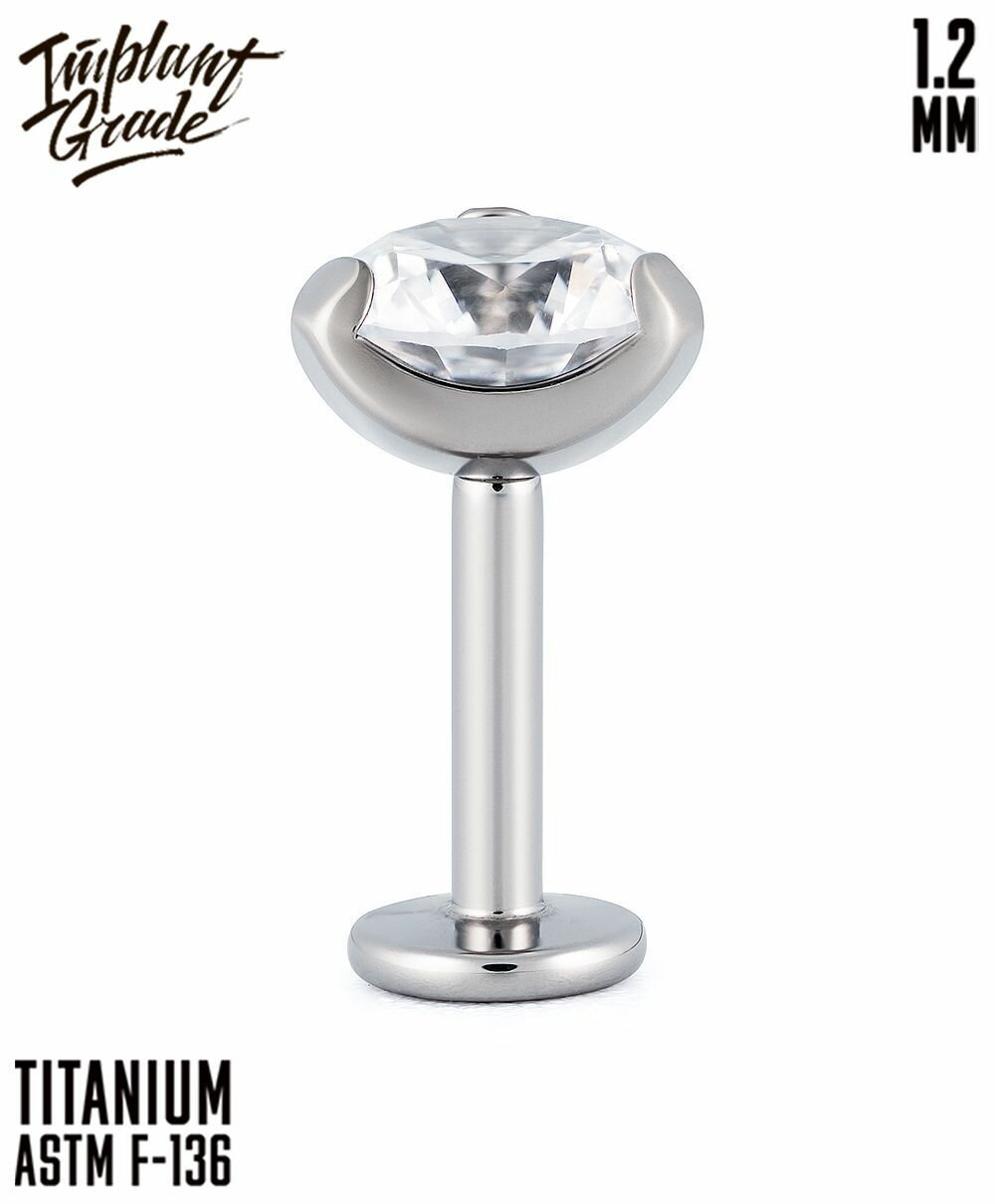 Пирсинг Implant Grade лабрет титан Crystal gem 1.2 мм - 2 мм