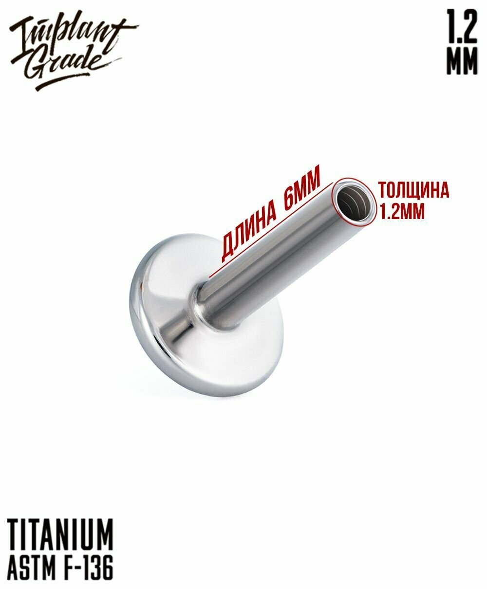 Пирсинг Implant Grade лабрет титан Crystal gem 1.2 мм - 2.5 мм