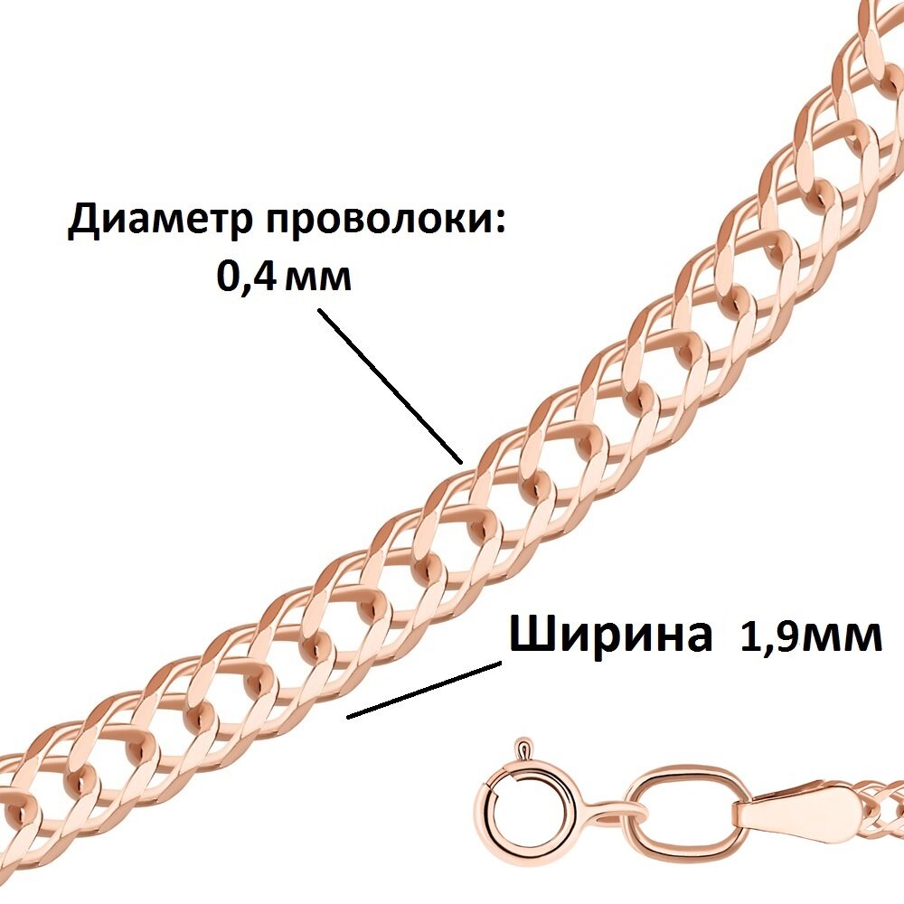 Браслет-цепочка LINEA, красное золото, 585 проба, длина 20 см.