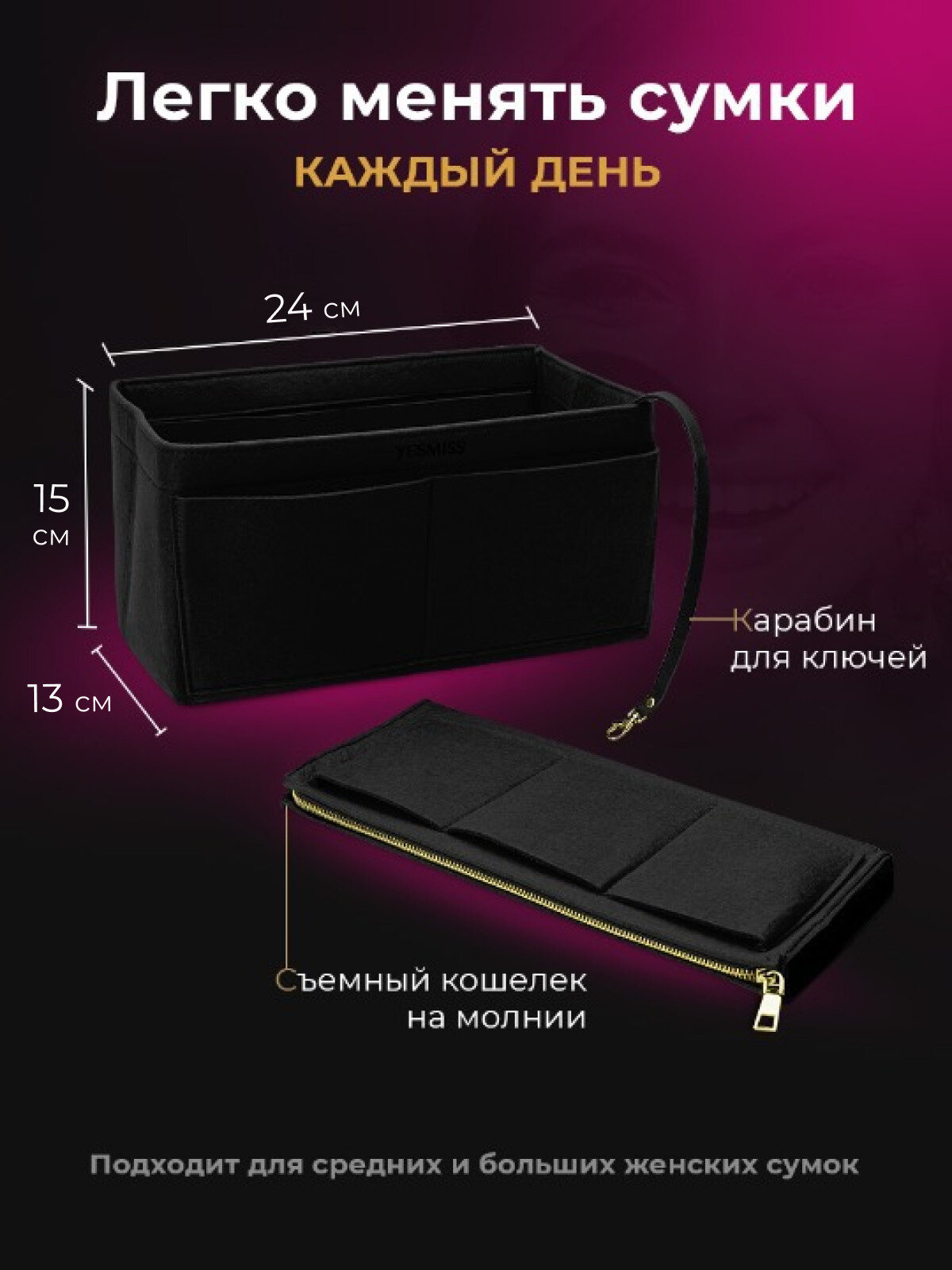 Органайзер для женской сумки размер M, дорожная косметичка для аксессуаров, вкладыш в сумку