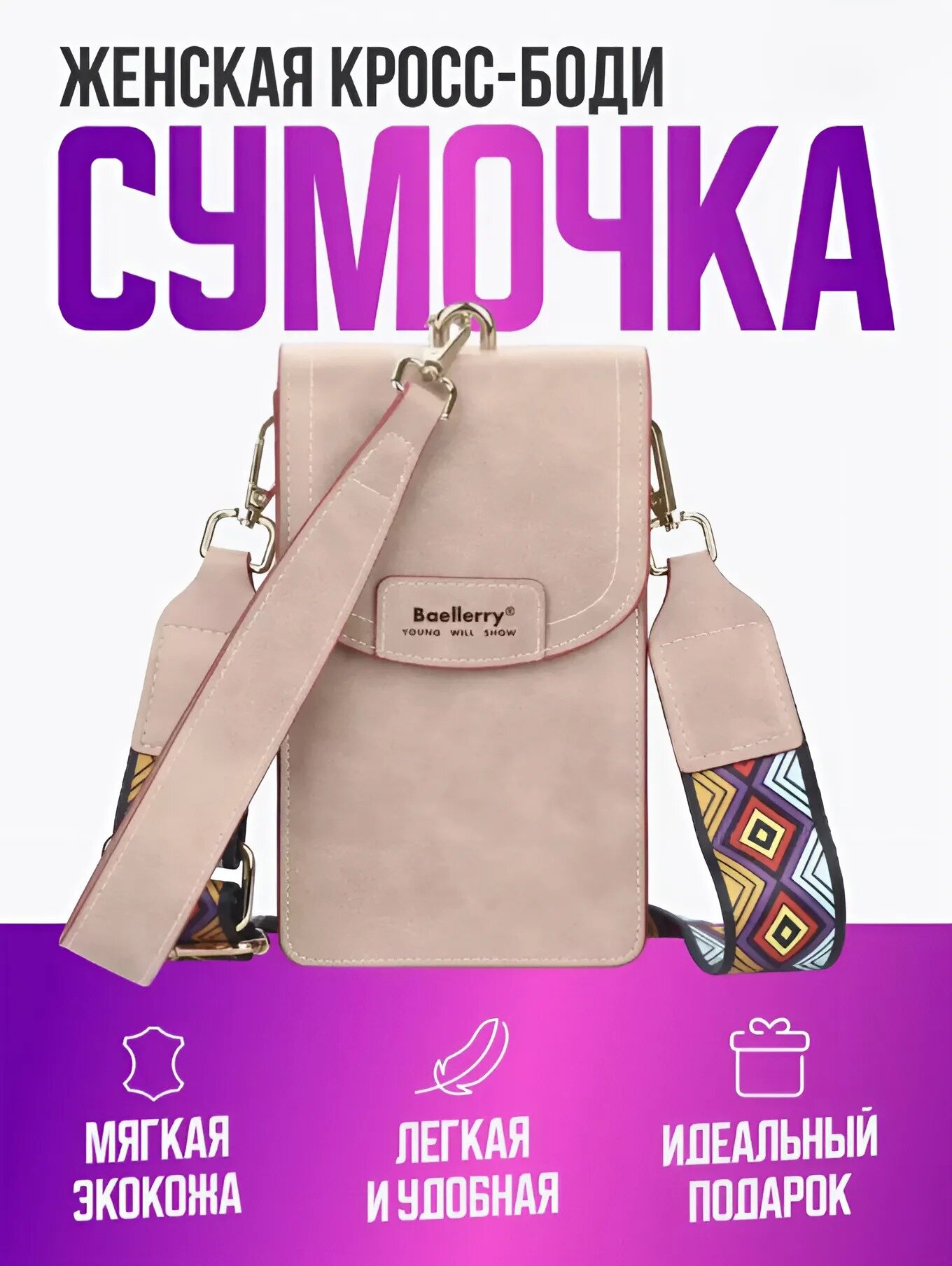 Женская сумка кросс-боди Baellerry (розовый)
