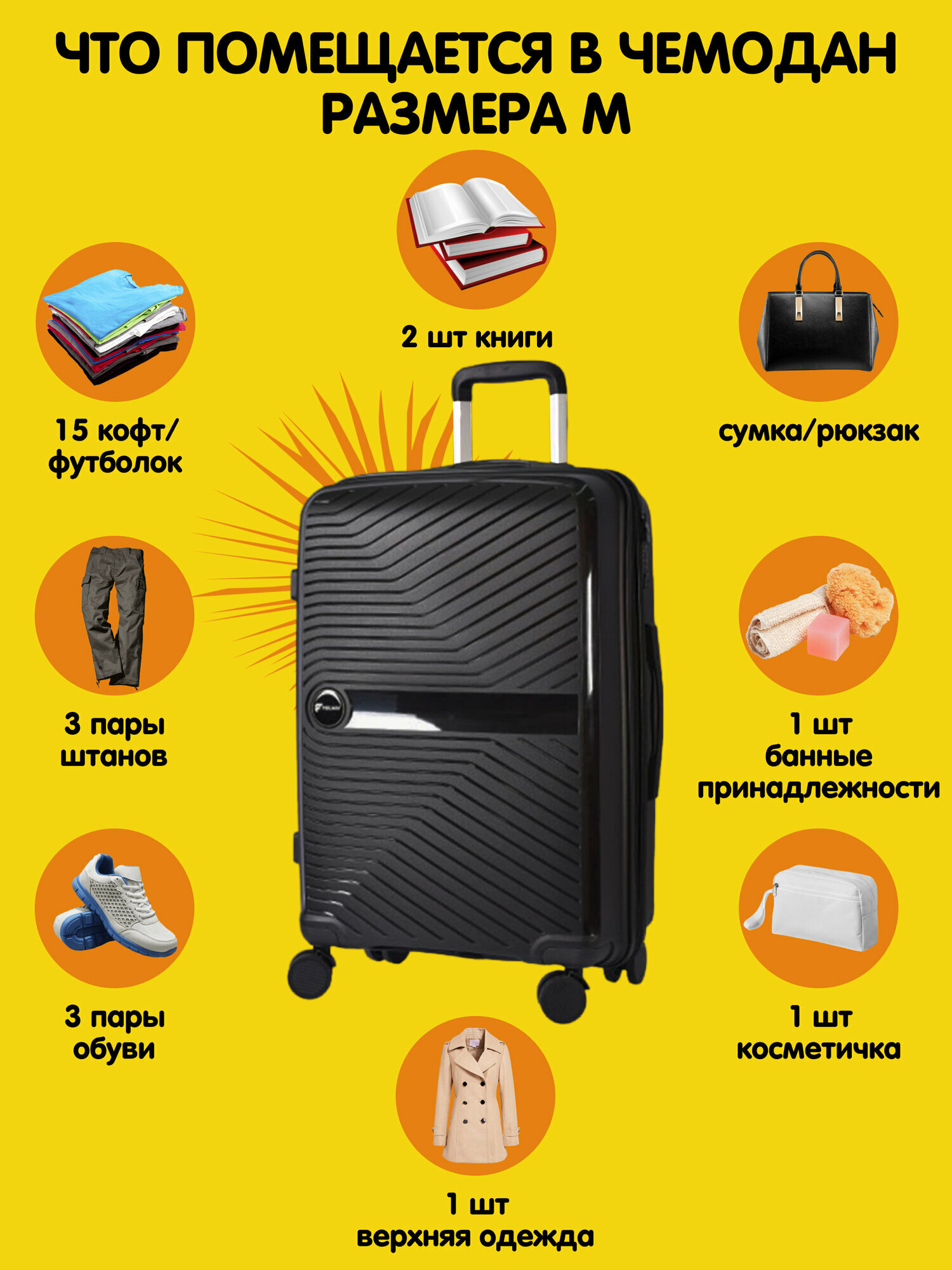 Чемодан FEELWAY, размер M, черный