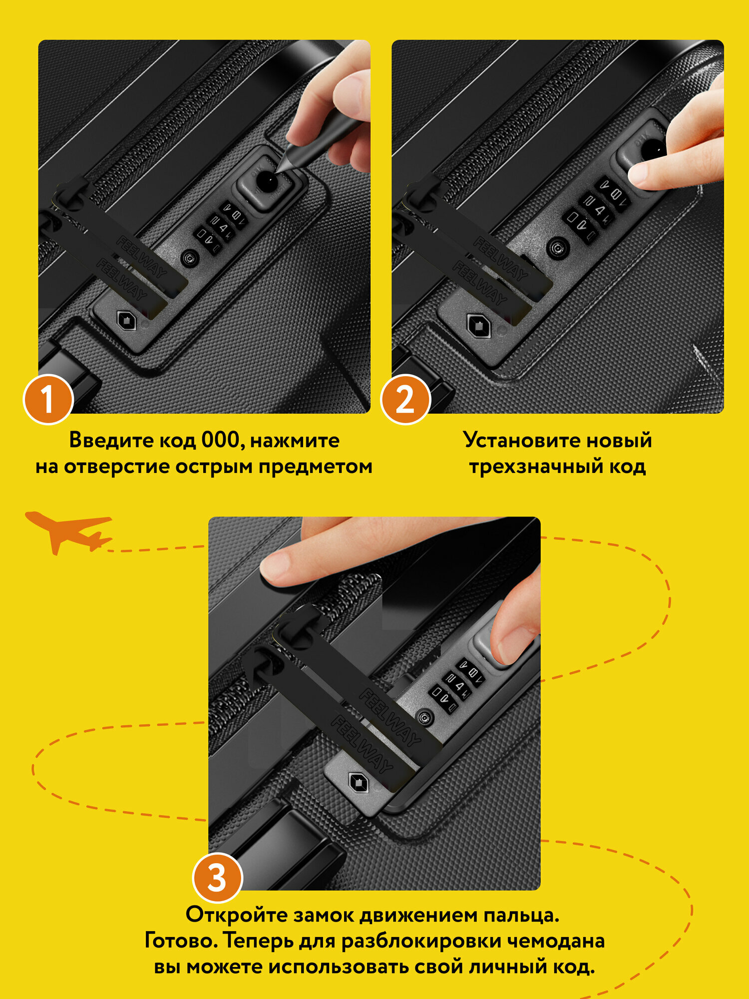 Чемодан FEELWAY, размер L, желтый