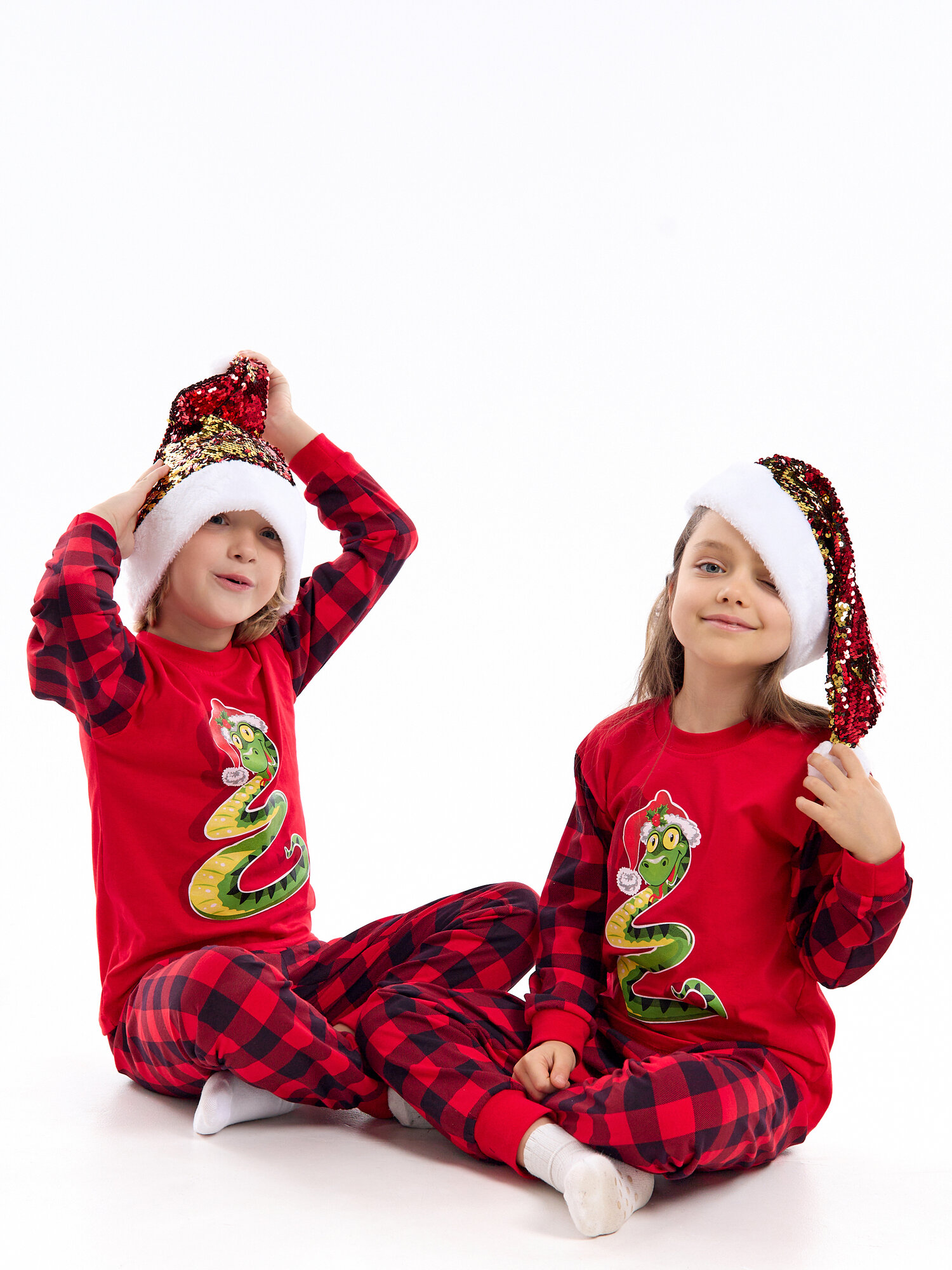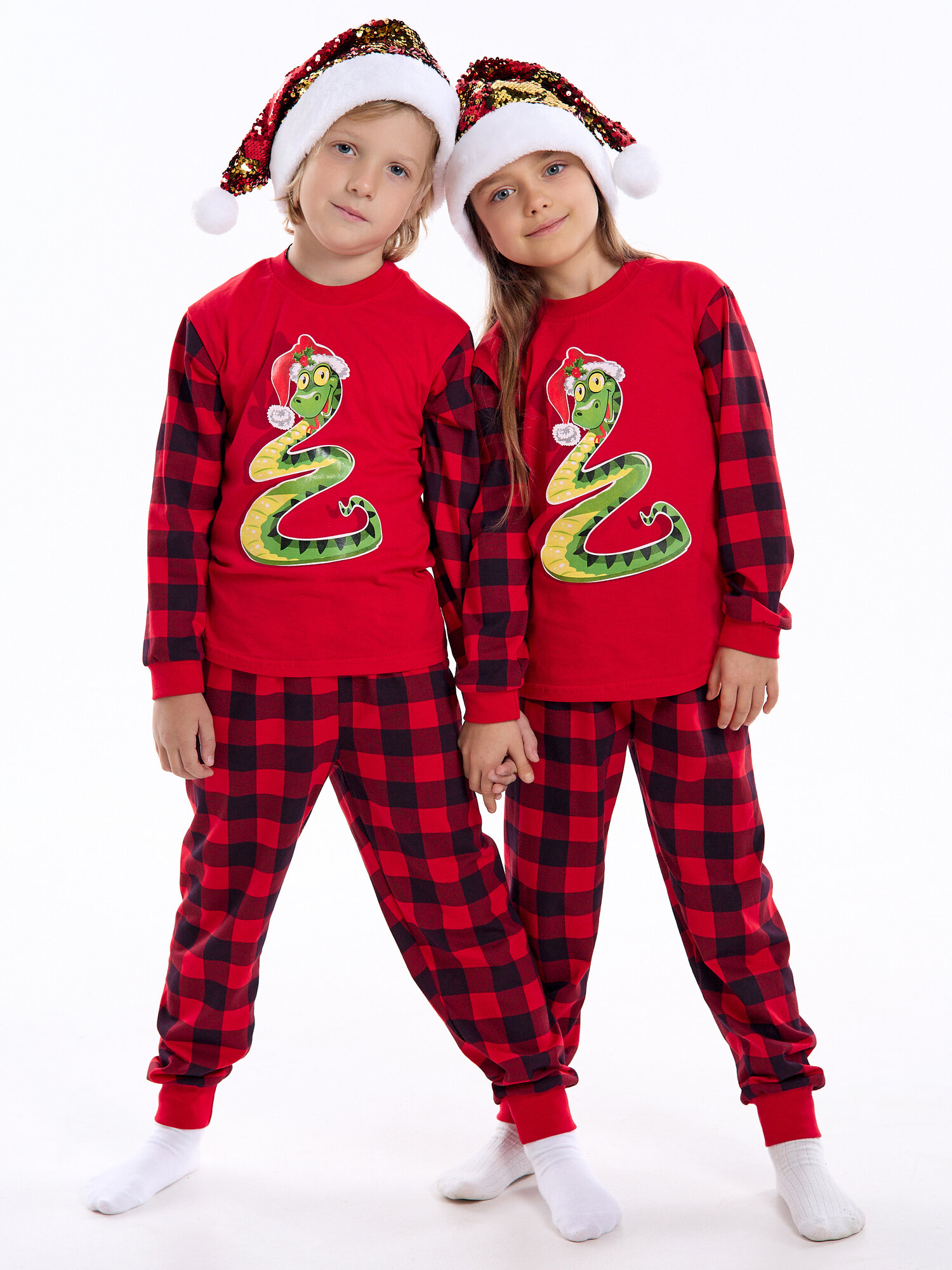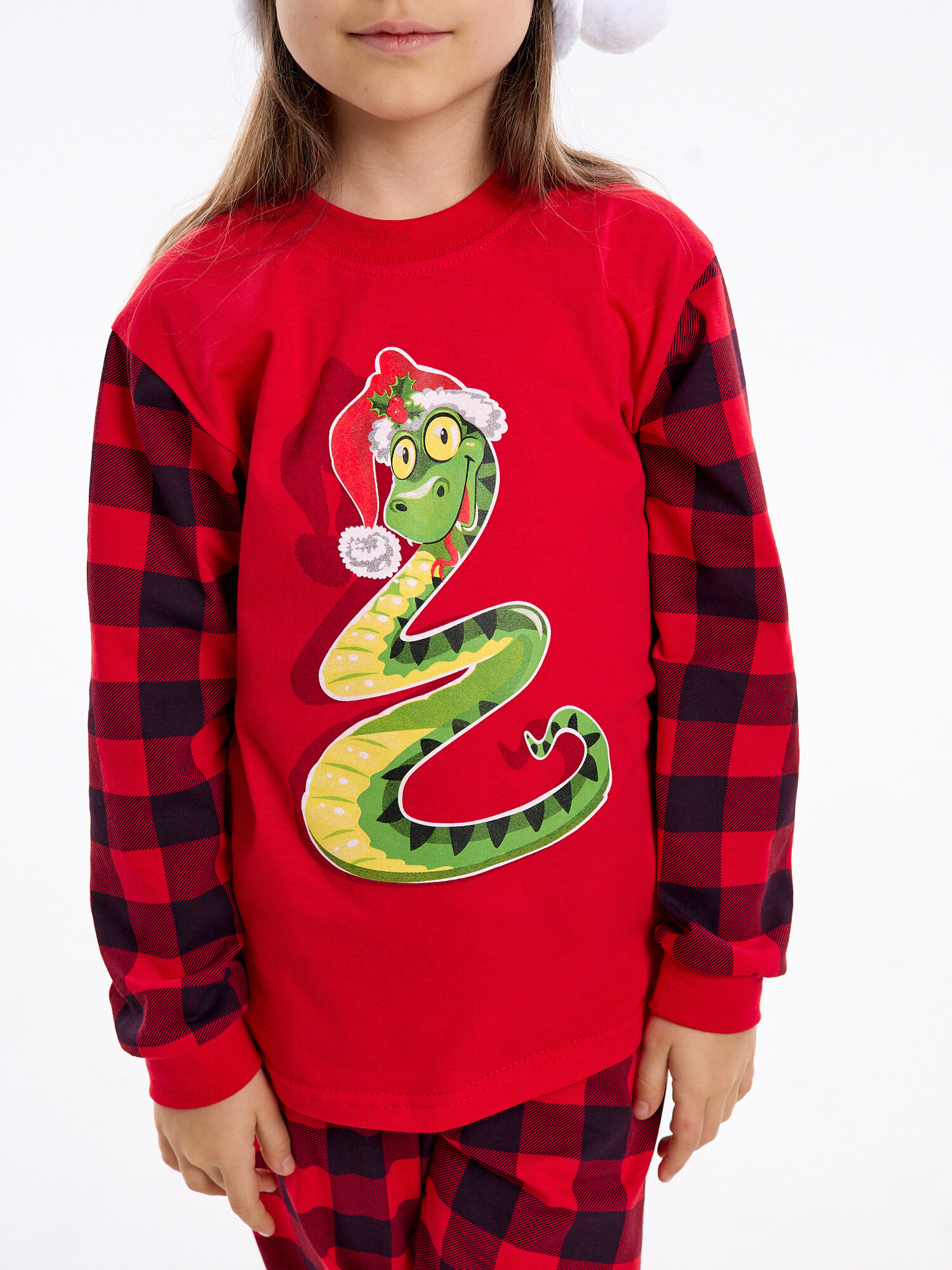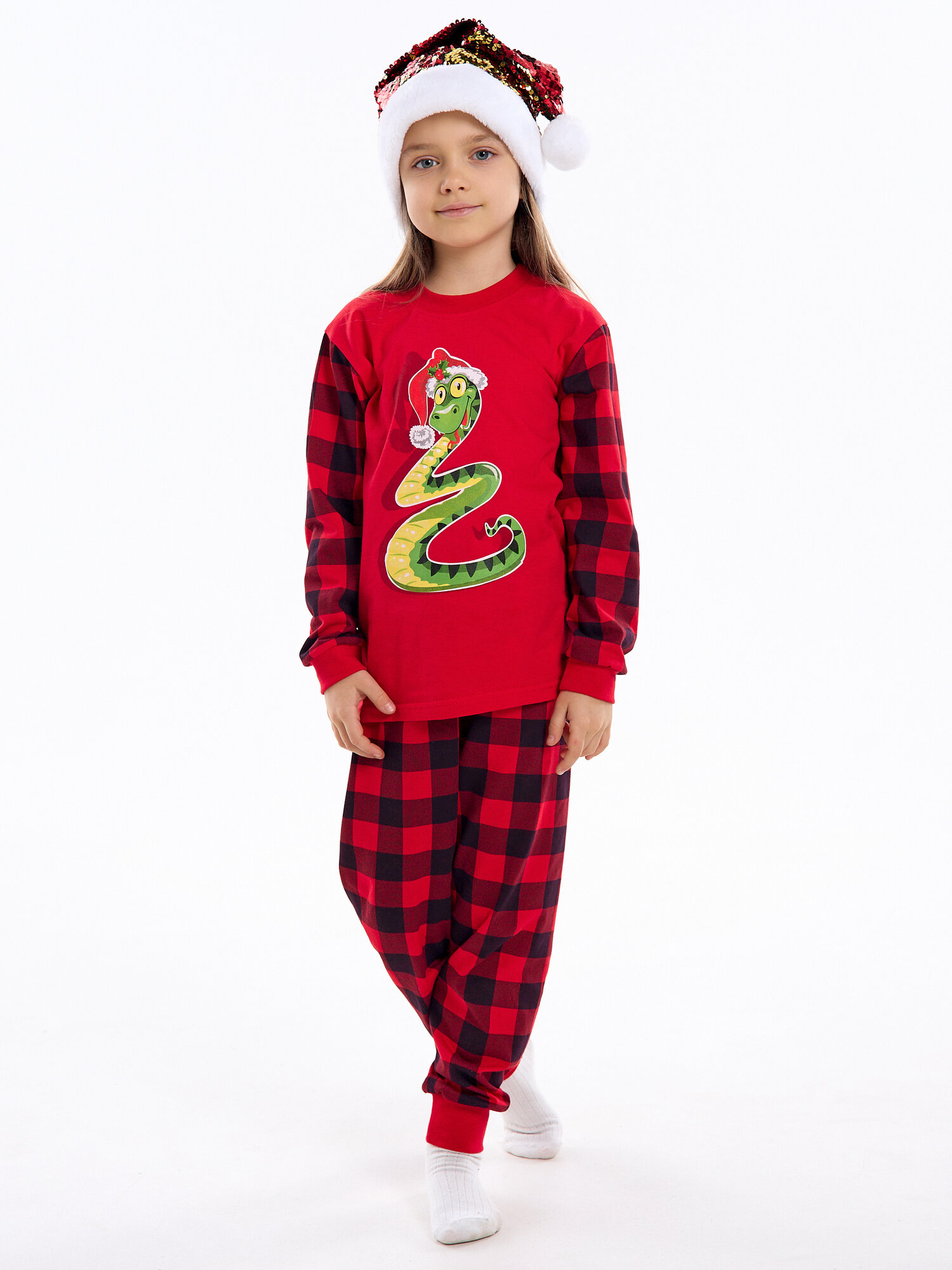 Купить Новогодняя пижама без начеса, Дети в цвете, цвет красный, размер 34-122