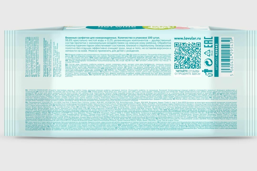 Салфетки влажные LOVULAR Sweet Kiss 100шт 1шт!
