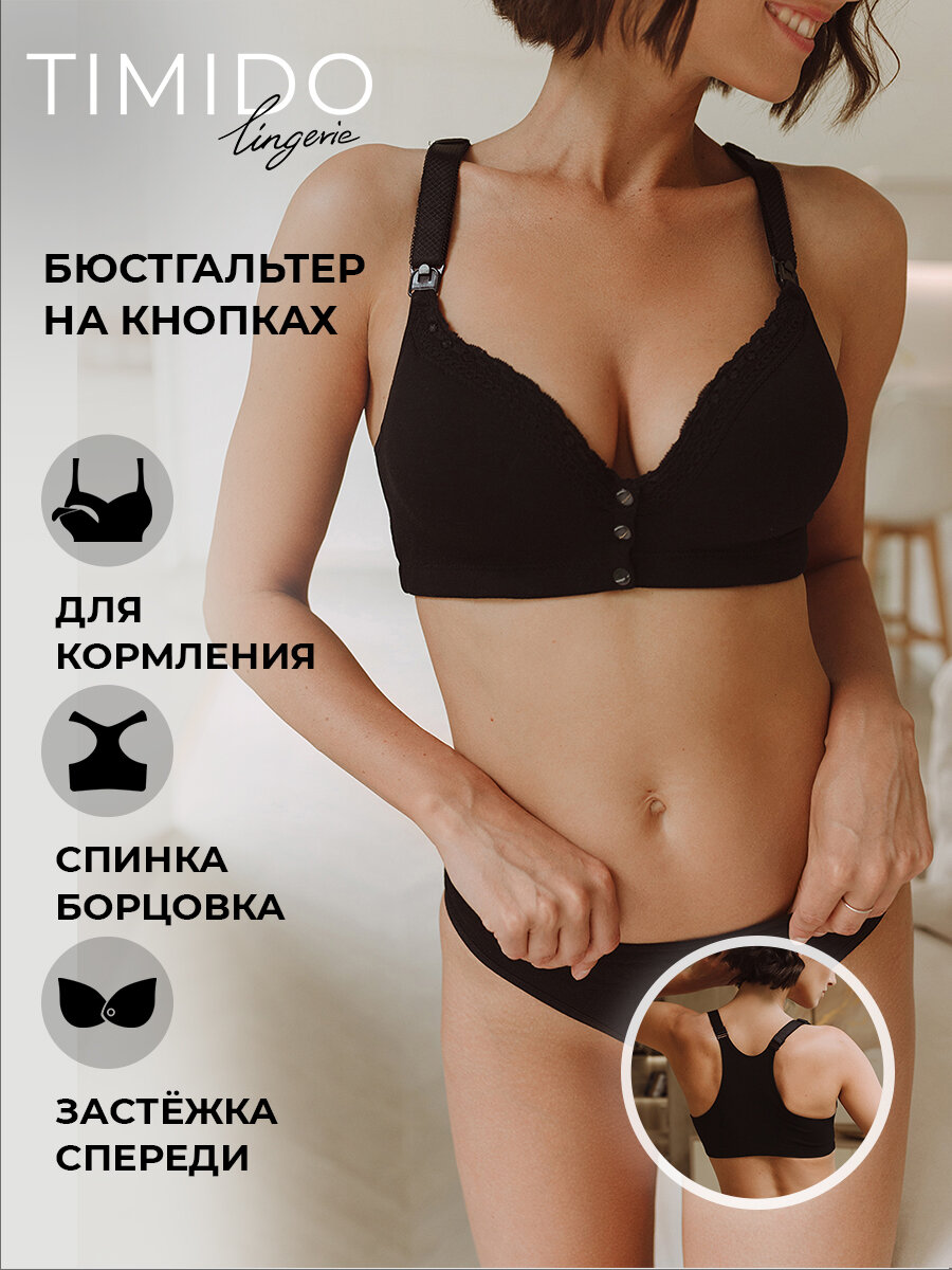 СохранитьБюстгальтер TIMIDO 90028 для кормления на застежках спереди 80B черный интересное: