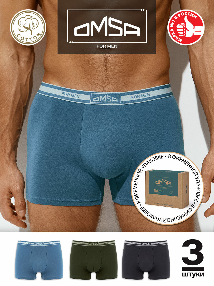 Трусы мужские, набор 3 штуки, трусы OMSA OmB1234 Boxer, хлопковые трусы мужские, трусы-боксеры