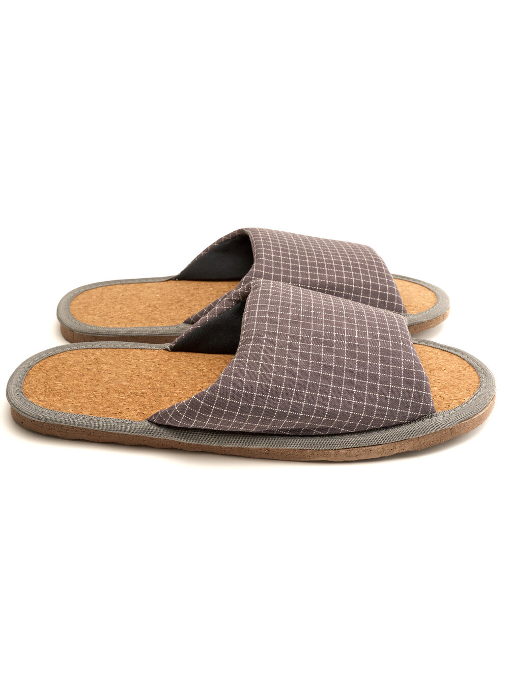 Купить Мужские домашние тапки "LepiloV", открытые, на пробковой стельке. Размер 42. Серая клетка.